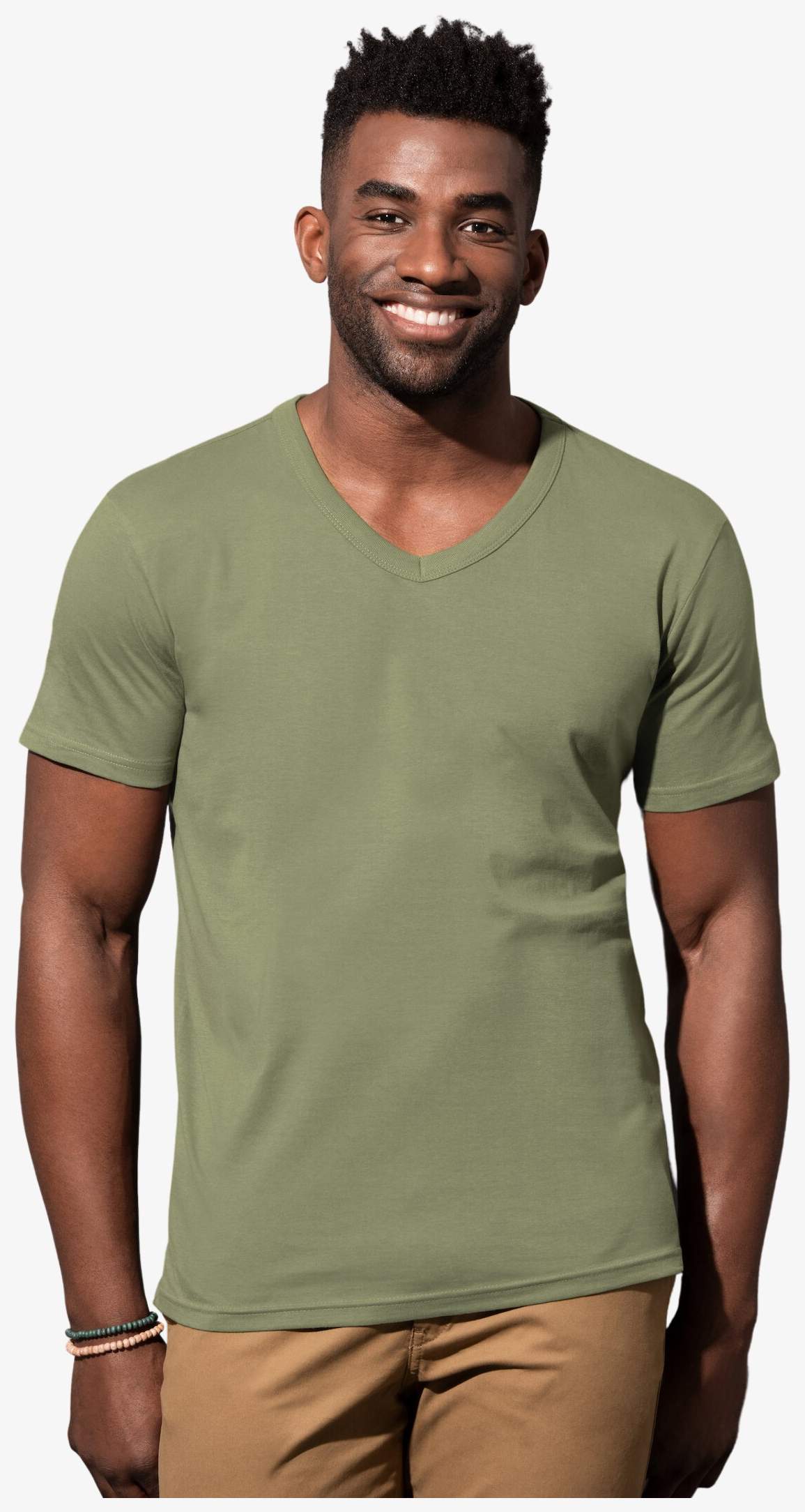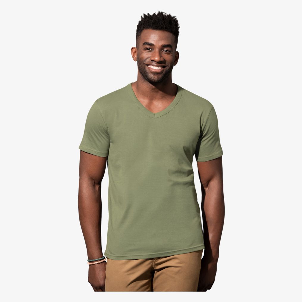 Le Ben V-neck est un tee-shirt homme à col V en jersey simple, avec col côtelé à liseré et coutures latérales. Composition : 100% coton ring-spun ; GYH : 85% coton, 15% viscose.