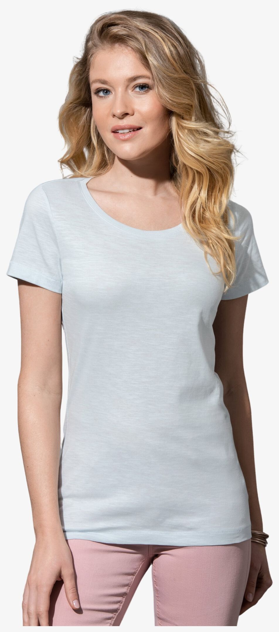 T-shirt tendance pour femmes en coton flammé doux avec structure originale en fil flammé, encolure large et points d'ornement à la base des manches et du bord. fil flammé pour un effet structuré, col fin moderne, pas d'étiquette de marque dans le cou. fil flammé pour un effet structuré, couture épaules renforcée, coutures faites mains sur l'ourlet et aux manches, encolure ample, fin col côtelé, bande de propreté d'épaule à épaule, coutures latérales, petite étiquette de taille dans le cou, étiquette d'entretien dans la couture latérale, lavable à 40°C. Composition : 100% coton ring-spun; fil flammé, jersey simple. Grammage : 140g/m²