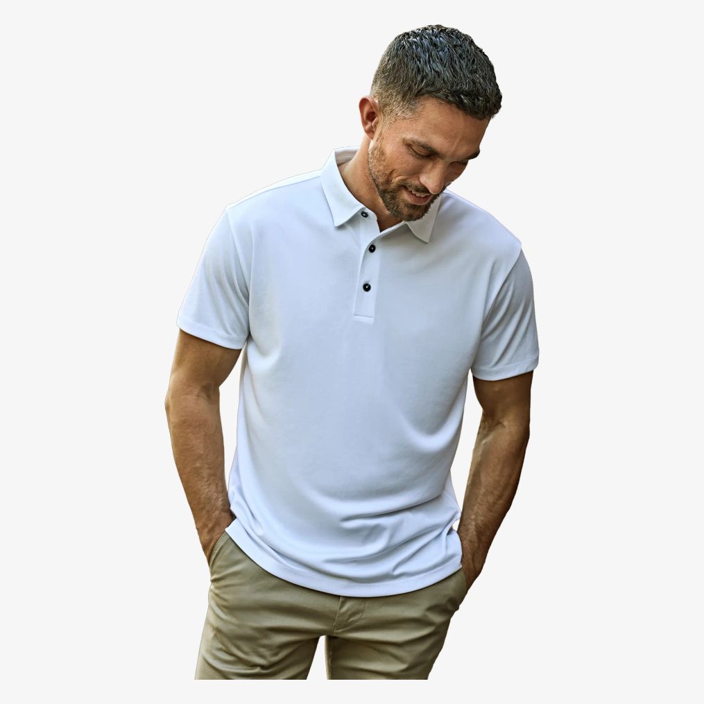 Le polo sport ajusté pour homme est confectionné en maille jersey 100% polyester. Il présente une coupe ajustée et une plaquette à 3 boutons anthracite. Ce vêtement facilite l'évaporation de la transpiration pour un usage sportif.