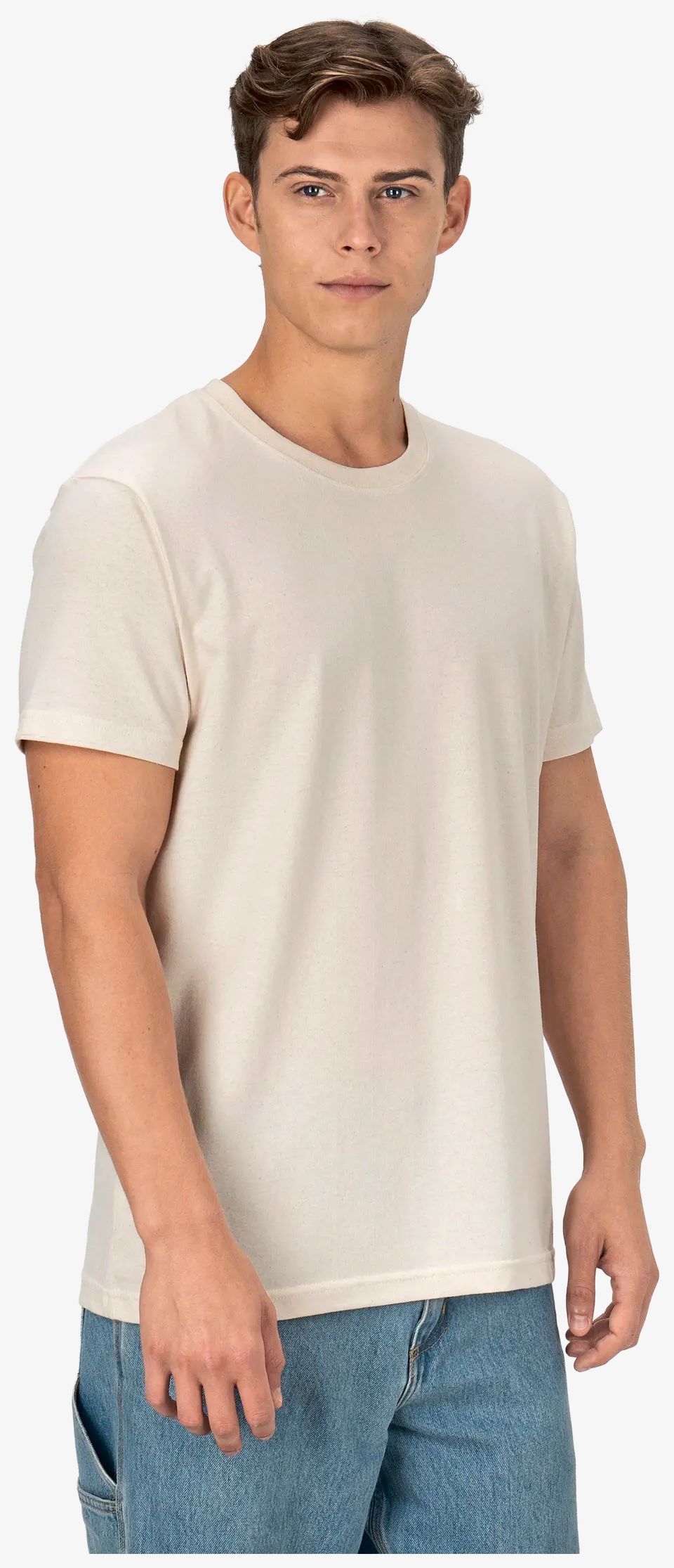 Le Unisex Short Sleeve T-Shirt est fabriqué en jersey simple avec une composition de 60% coton et 40% polyester recyclé. Il présente un col côtelé double épaisseur avec double couture et une bande renforcée au col. La structure comporte des coutures latérales.