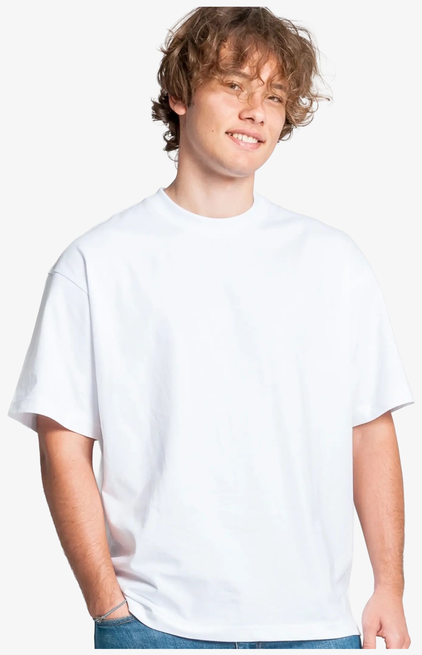 Le short sleeve crew neck tee-shirt présente une coupe boxy avec épaules tombantes et est conçu sans étiquette pour un port sans contrainte. La composition est en 100 % coton ringspun.