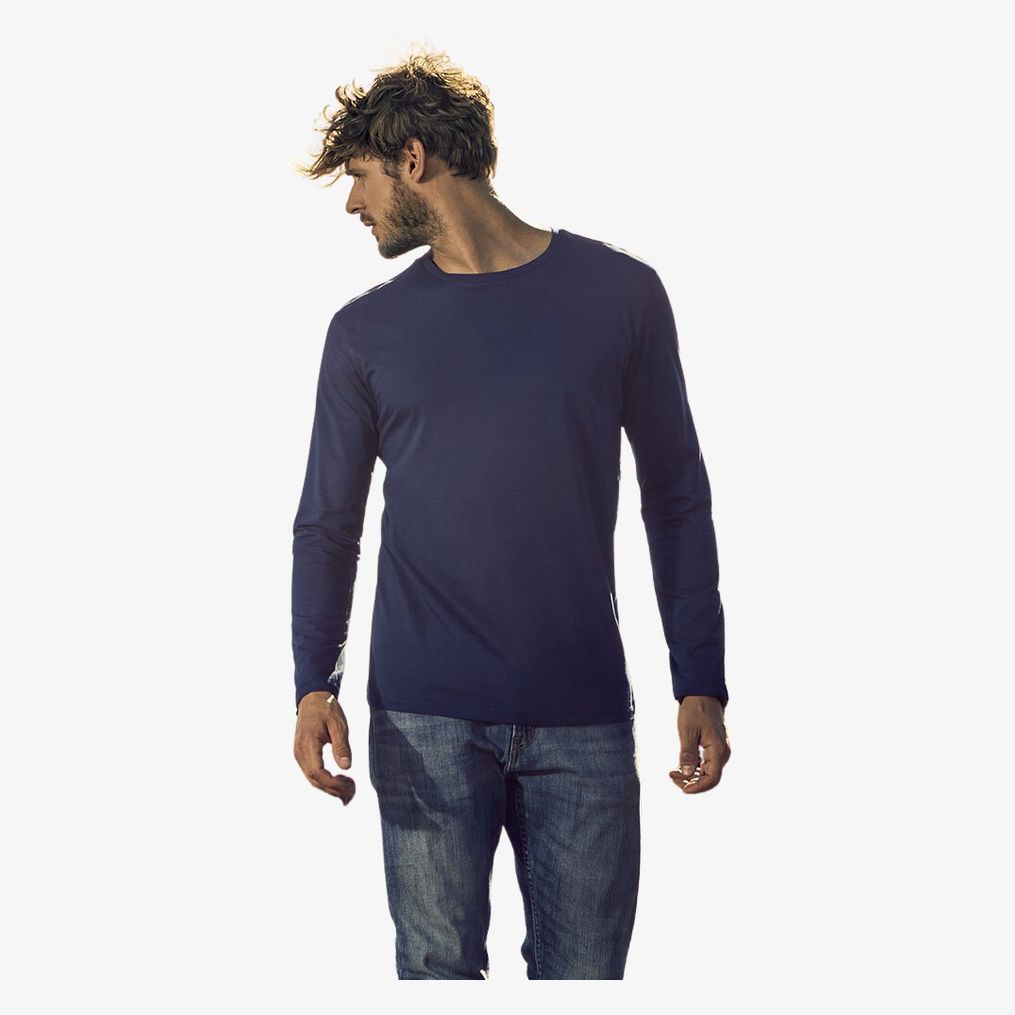 Le tee-shirt coton peigné Men's Roundneck T-Shirt Longsleeve est conçu en 100% coton avec une sensation douce et une élasticité adaptée. Le bord du col est en tissu identique et l'étiquette de taille est neutre. Les coutures sont doubles et renforcées aux épaules pour une meilleure tenue.