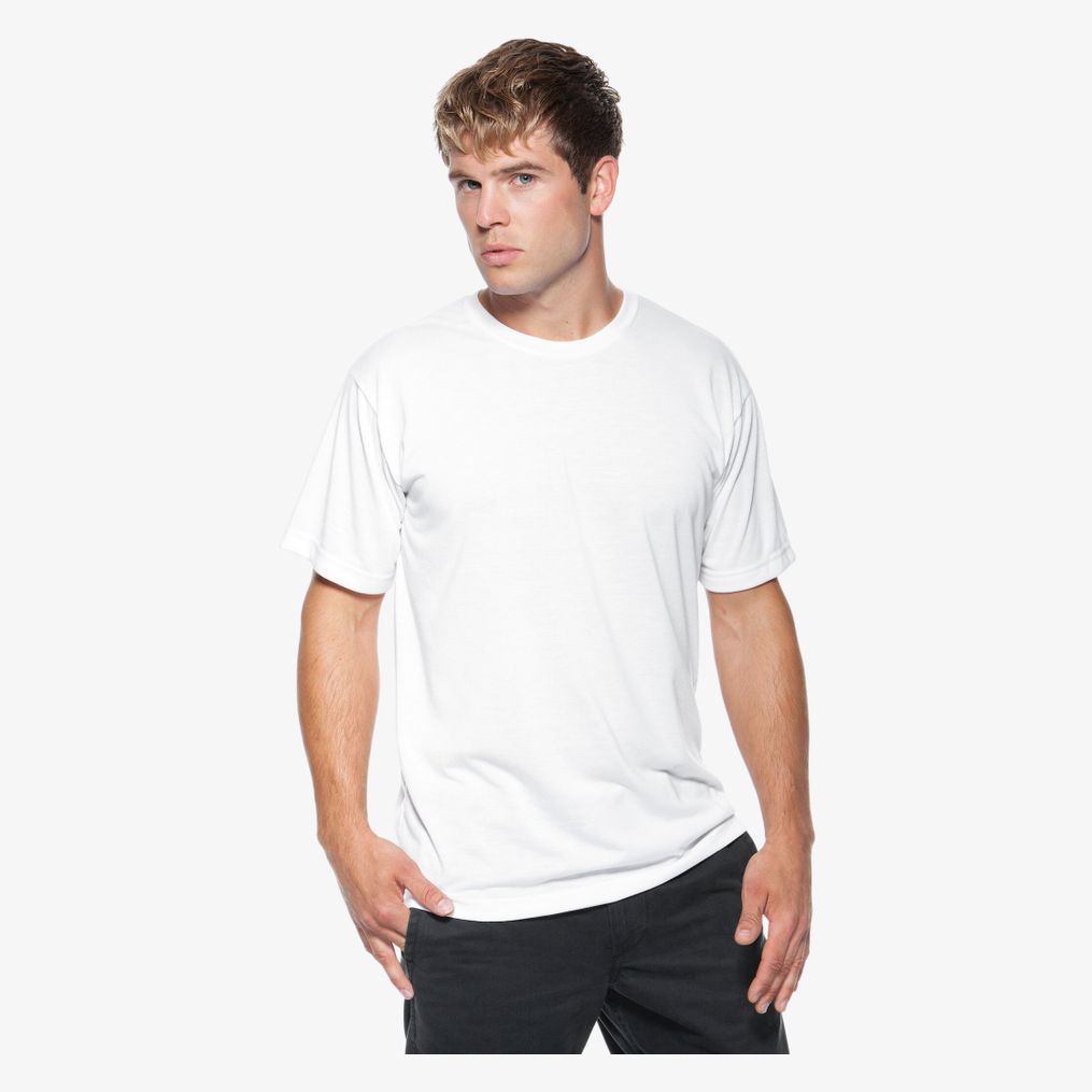 Le Mens Subli Plus® est un tee-shirt en polyester 100 % conçu pour la sublimation avec une surface d'impression adaptée à ce procédé.