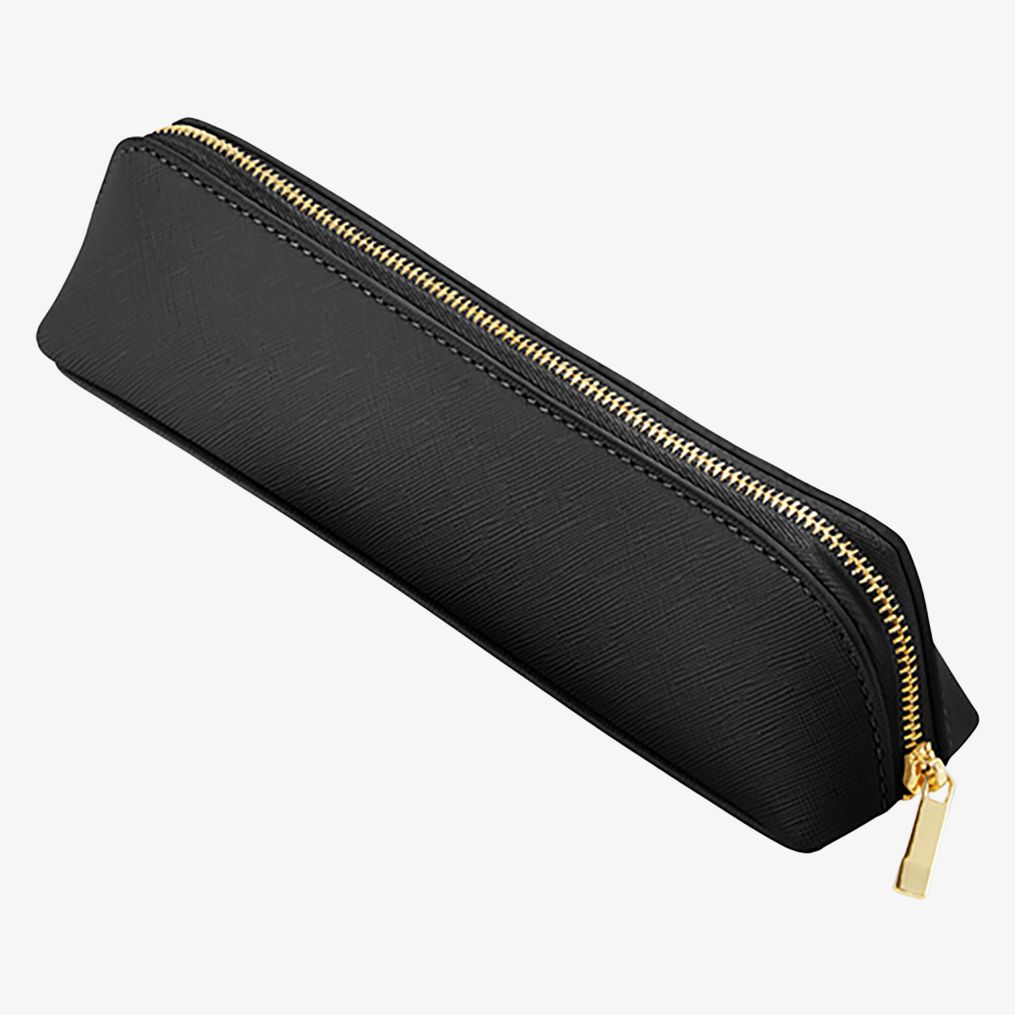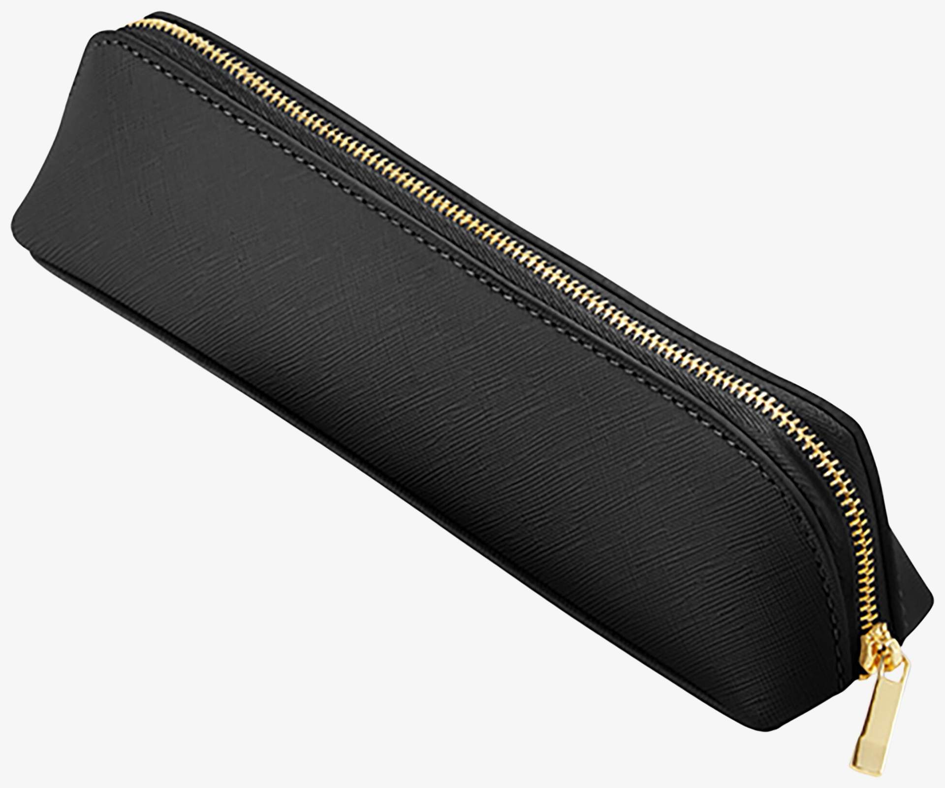Trousse en similicuir. Doublure douce au toucher. Compartiment principal à fermeture zippée· Étiquette TearAway. Capacité: 0.5 litres. Dimensions : 22 x 5,5 x 4,5 cm. Composition : 100% Polyuréthane (similicuir Saffiano grain fin).