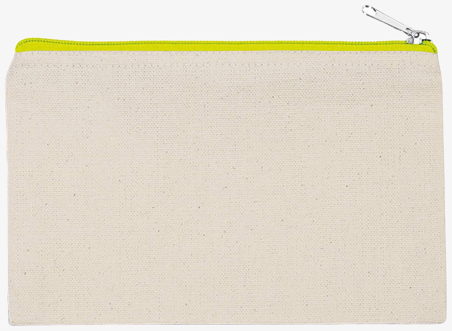 La pochette coton canvas petit modèle comprend une fermeture zippée de couleur contrastée. Elle présente des dimensions compactes adaptées à un usage courant.