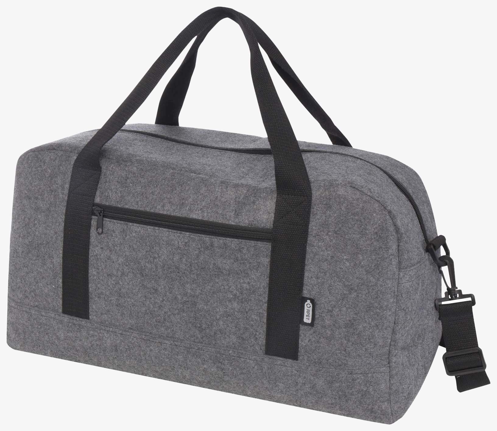 Le sac voyage Felta recyclé 35L est conçu en polyester recyclé. Il comprend un grand compartiment principal, une poche frontale zippée, une poche latérale, des bretelles amovibles réglables et des poignées en coton. Des petits pieds au bas du sac le maintiennent légèrement au-dessus du sol, limitant le contact avec la saleté ou l'humidité.