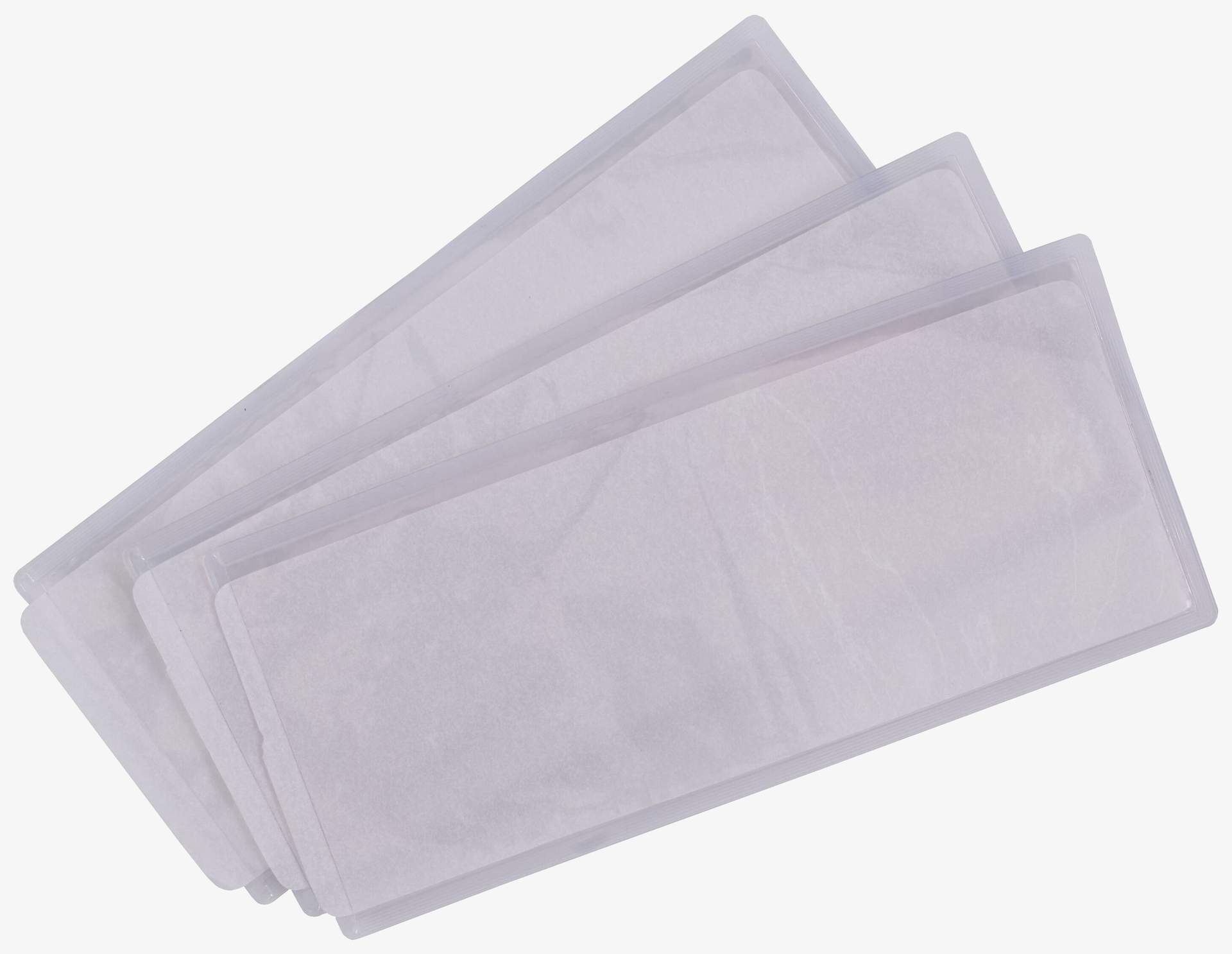 Os bolsos de identidade termocolantes permitem fixar cartões por termocolagem a 130 °C durante 10 segundos. São concebidos para conter cartões medindo até 270x110 mm e são impermeáveis.
