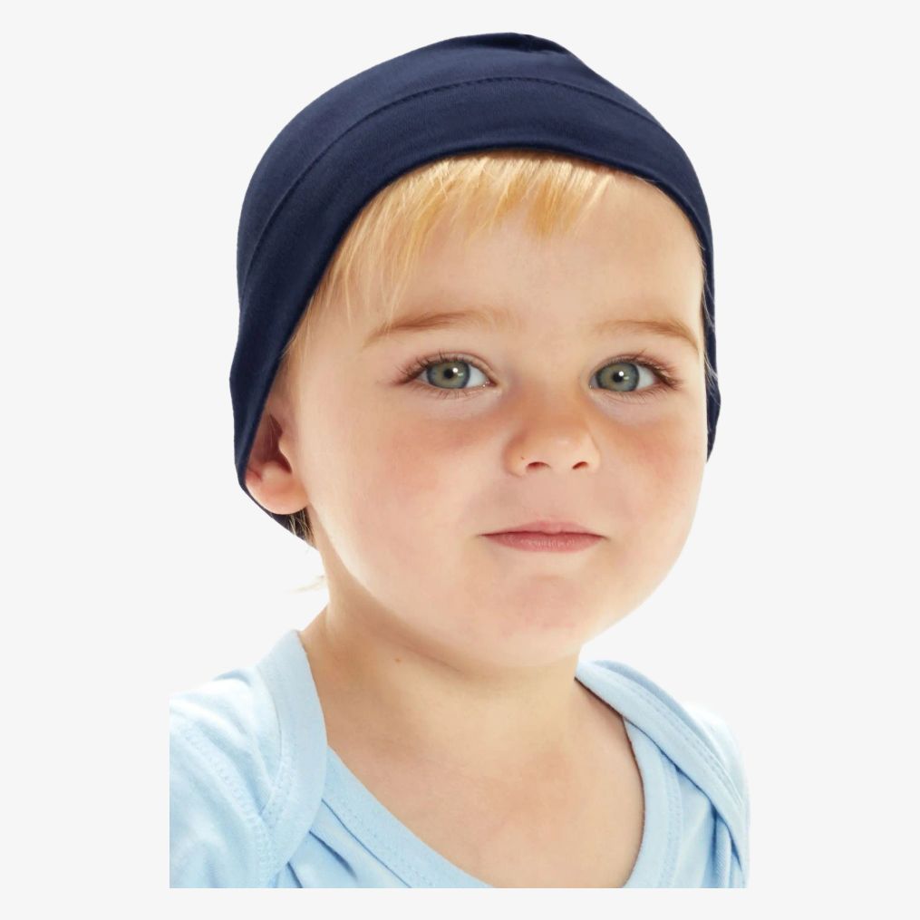 O Baby hat é uma touca de bebé em algodão, com etiqueta de tamanho removível e faixa larga ao redor da cabeça. Perímetro da cabeça indicado: 37 cm.