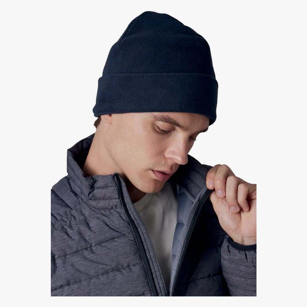 O gorro micropolar com bainha é produzido em poliéster reciclado. Apresenta material macio, quente e respirável. A bainha melhora a fixação e o conforto. A etiqueta é destacável.