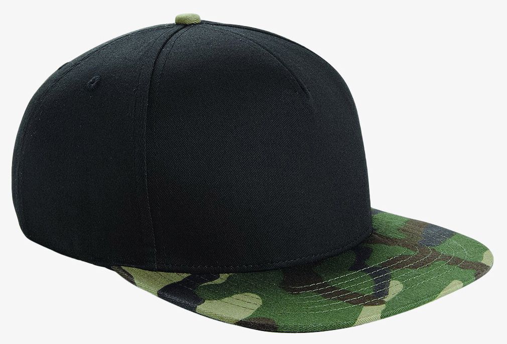 O Casquette snapback camouflage é adequado para uso diário, com 5 painéis, viseira plana e orifícios de ventilação bordados. Tamanho único ajustável por fecho de plástico.