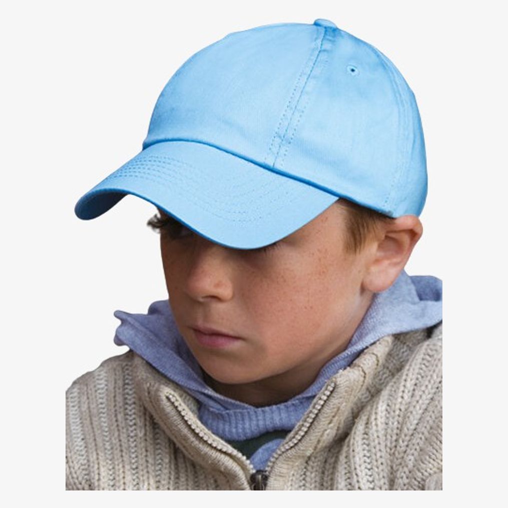 O Kids Baseball Cap é um boné infantil em sarja de algodão, concebido com 6 painéis e um formato achatado. A pala com pespontos e o fecho de ajuste com clip permitem um ajuste simples.