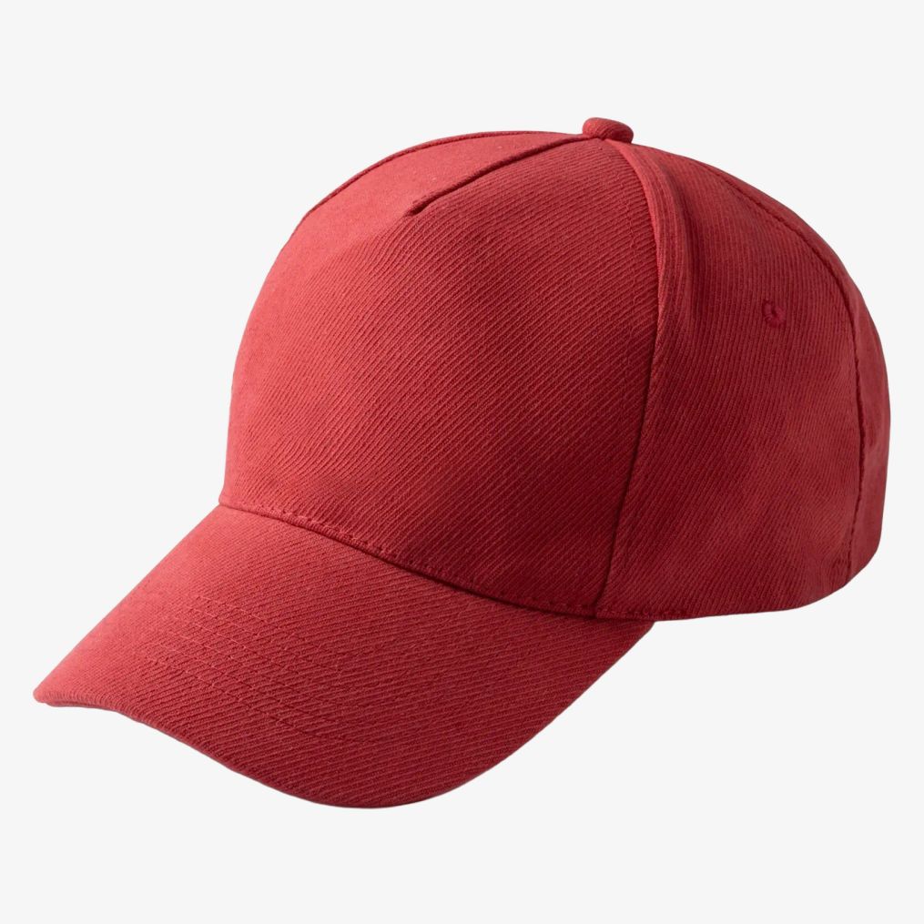 O boné com 5 painéis é feito em algodão com fivela de ajuste e ilhós de ventilação. É adequado para tamanho adulto de 57 a 59 cm.