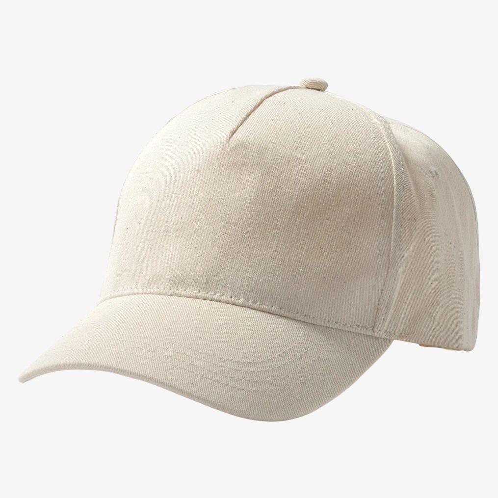 O boné 5 painéis é feito em algodão orgânico. Inclui tira autocolante ajustável e ilhós de ventilação para ventilação. A etiqueta é removível.