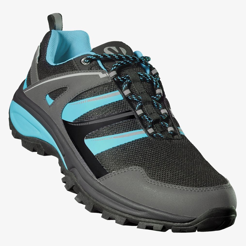 O calçado Marc é concebido para trekking com estrutura impermeável e detalhes refletivos. Possui atacadores redondos e rede respirável com elementos fluorescentes contrastantes para visibilidade. A palmilha é acolchoada e a sola exterior oferece boa aderência.