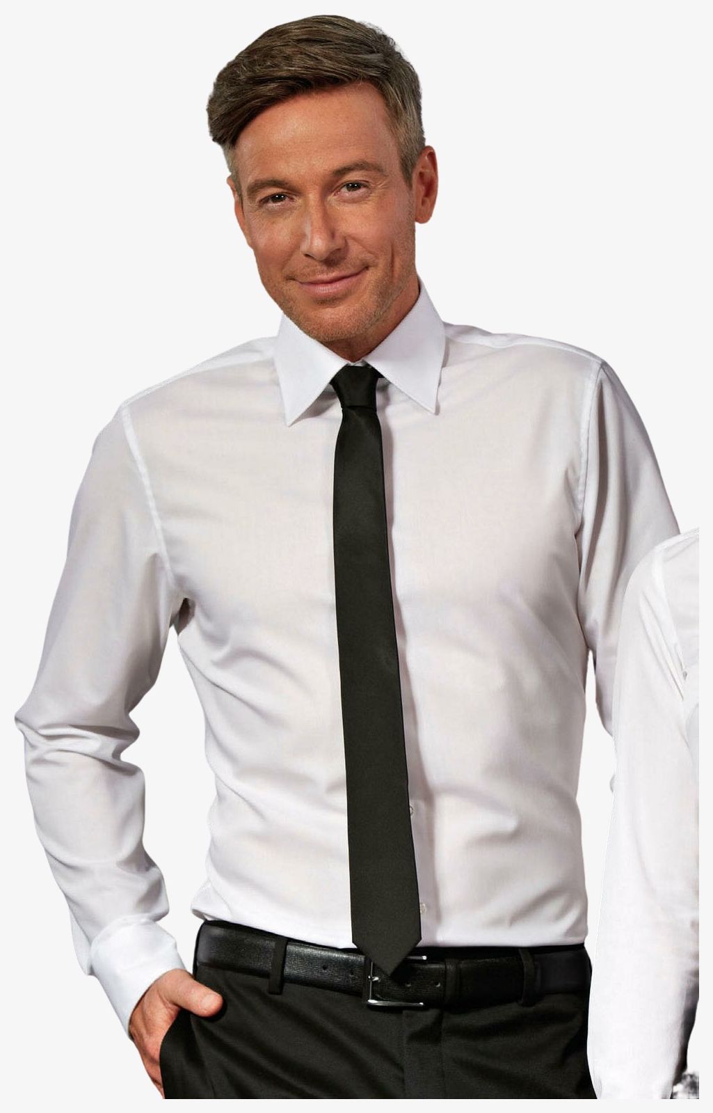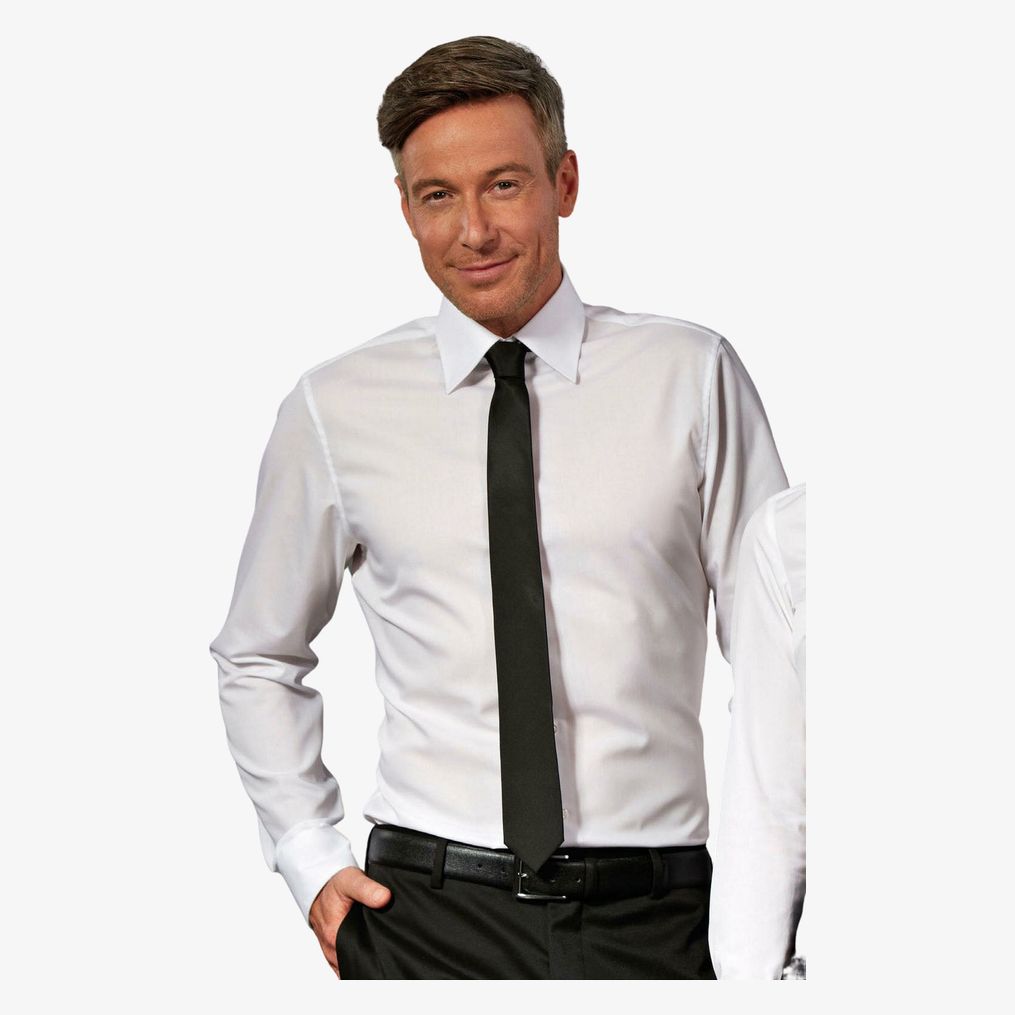 A camisa Schwarze Rose Shirt LS 21000 em algodão com gola kent e corte cintado. Costuras duplas e dois botões de reserva para uso diário.