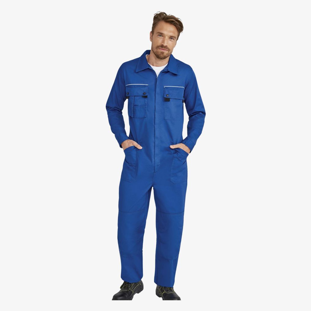 O Solstice Pro é um fato-macaco de trabalho com peitoral para uso profissional, com 10 bolsos, bolsos com aba e cintura traseira elástica para facilitar os movimentos. Composição: 65% poliéster e 35% algodão.