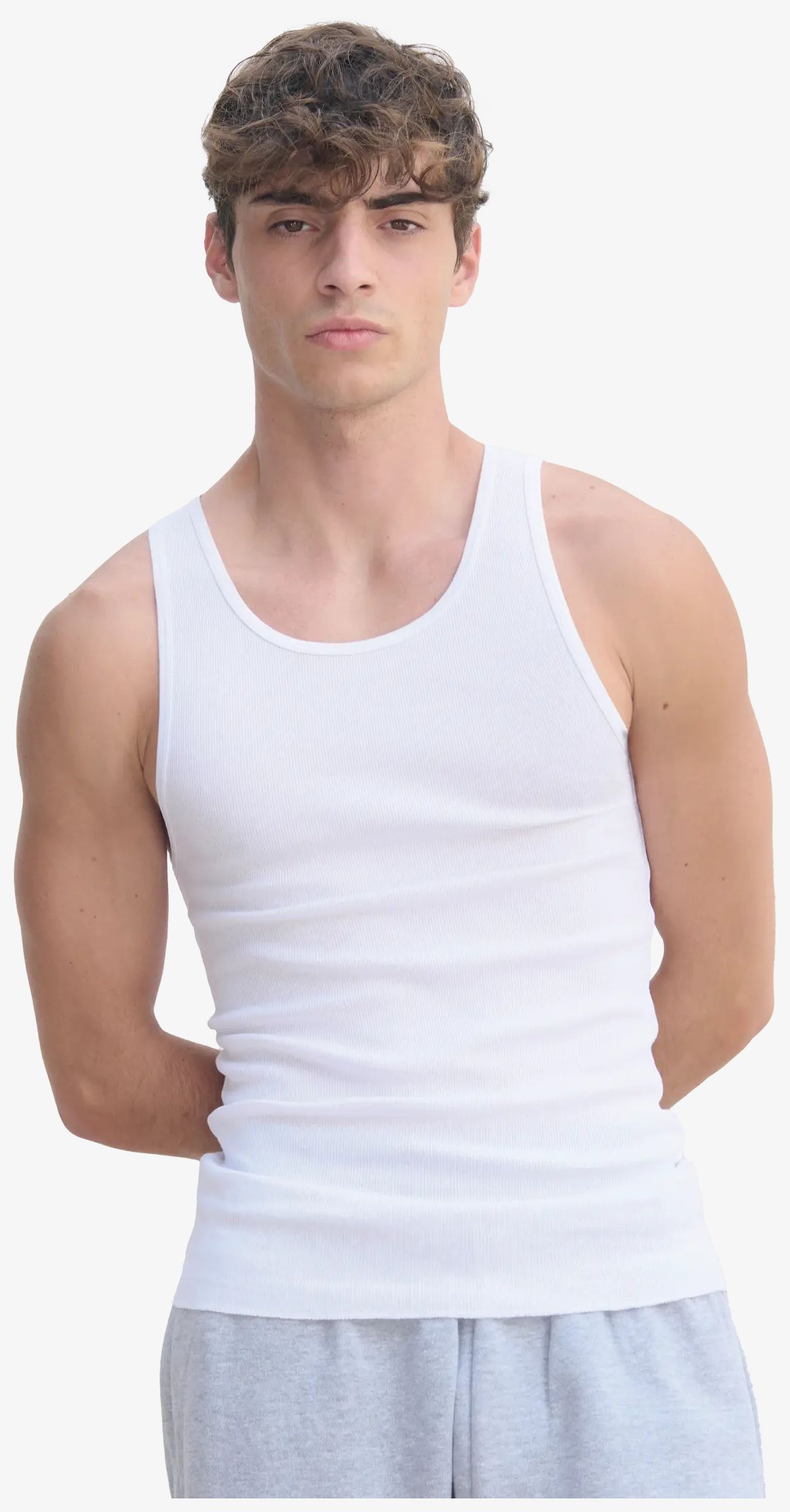 A regata Pablo é um modelo unissex com corte ajustado e tecido macio. Inclui acabamentos em viés jersey no decote e nas cavas para maior conforto e barra com acabamento retro overlock.