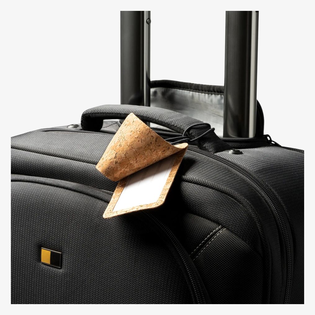 A etiqueta de bagagem em cortiça inclui um cartão interior para inserir as informações necessárias. Mede 6 x 11,7 cm e é feita em cortiça.