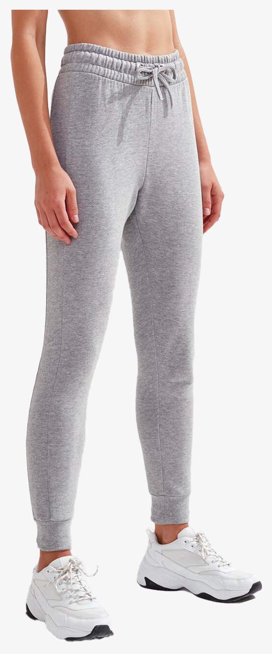 O jogger justo feminino combina algodão e poliéster para um aquecimento leve sem peso excessivo. O corte slim é projetado para um ajuste próximo ao corpo com cintura elástica e ilhós fosco prateado. As laterais e as barras caneladas usam material semelhante ao do tecido principal.