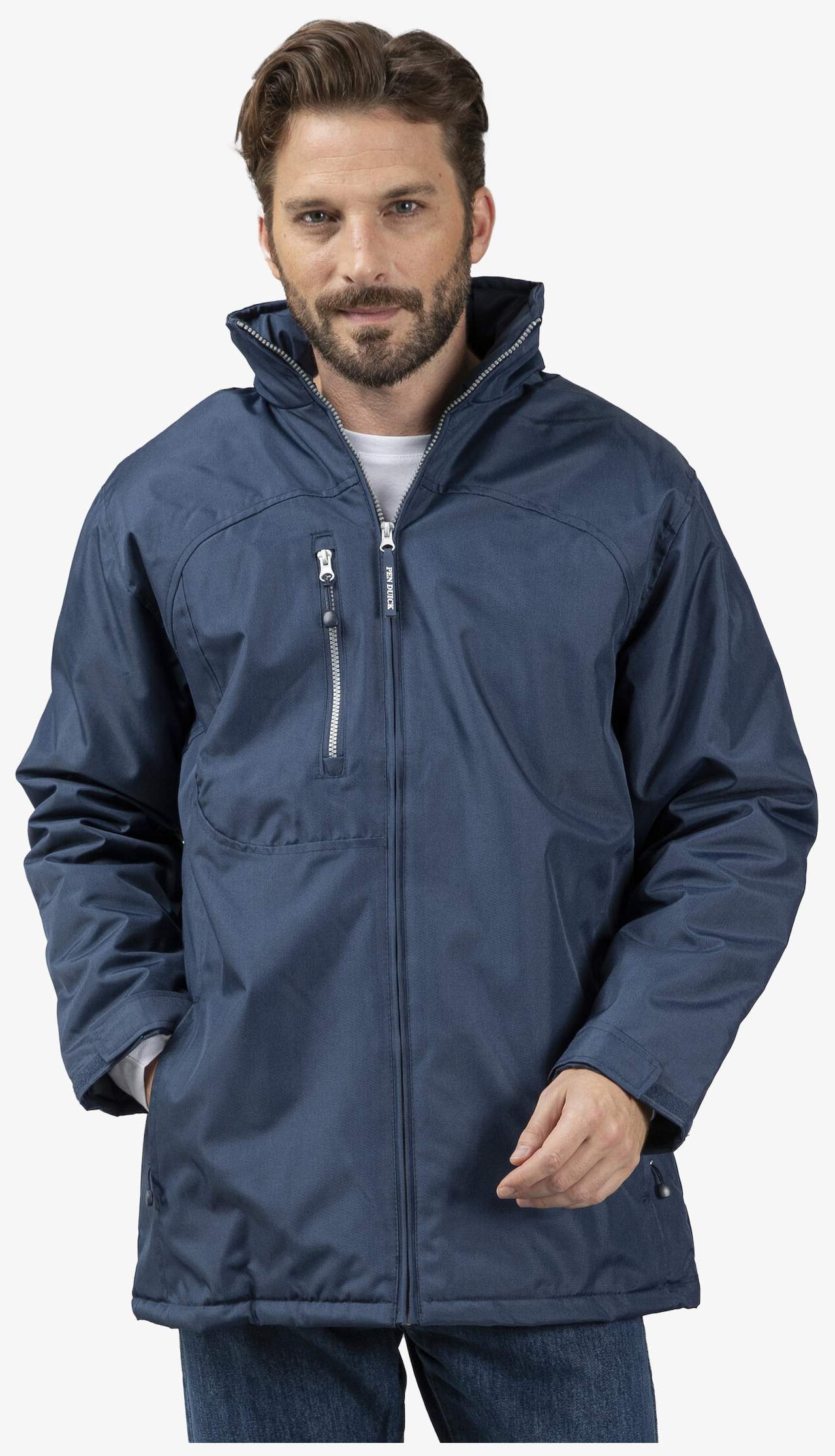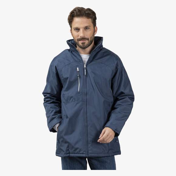 A Challenger é uma parka acolchoada de corte ajustado, com capuz guardado no colarinho e punhos ajustáveis. Bolsos laterais com fecho, no peito e interior para guardar objetos pessoais.