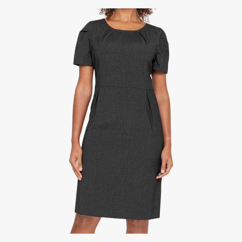 O vestido Primrose é totalmente forrado e adequado para uso profissional com pences no peito, ombros e ancas. Possui uma racha traseira.