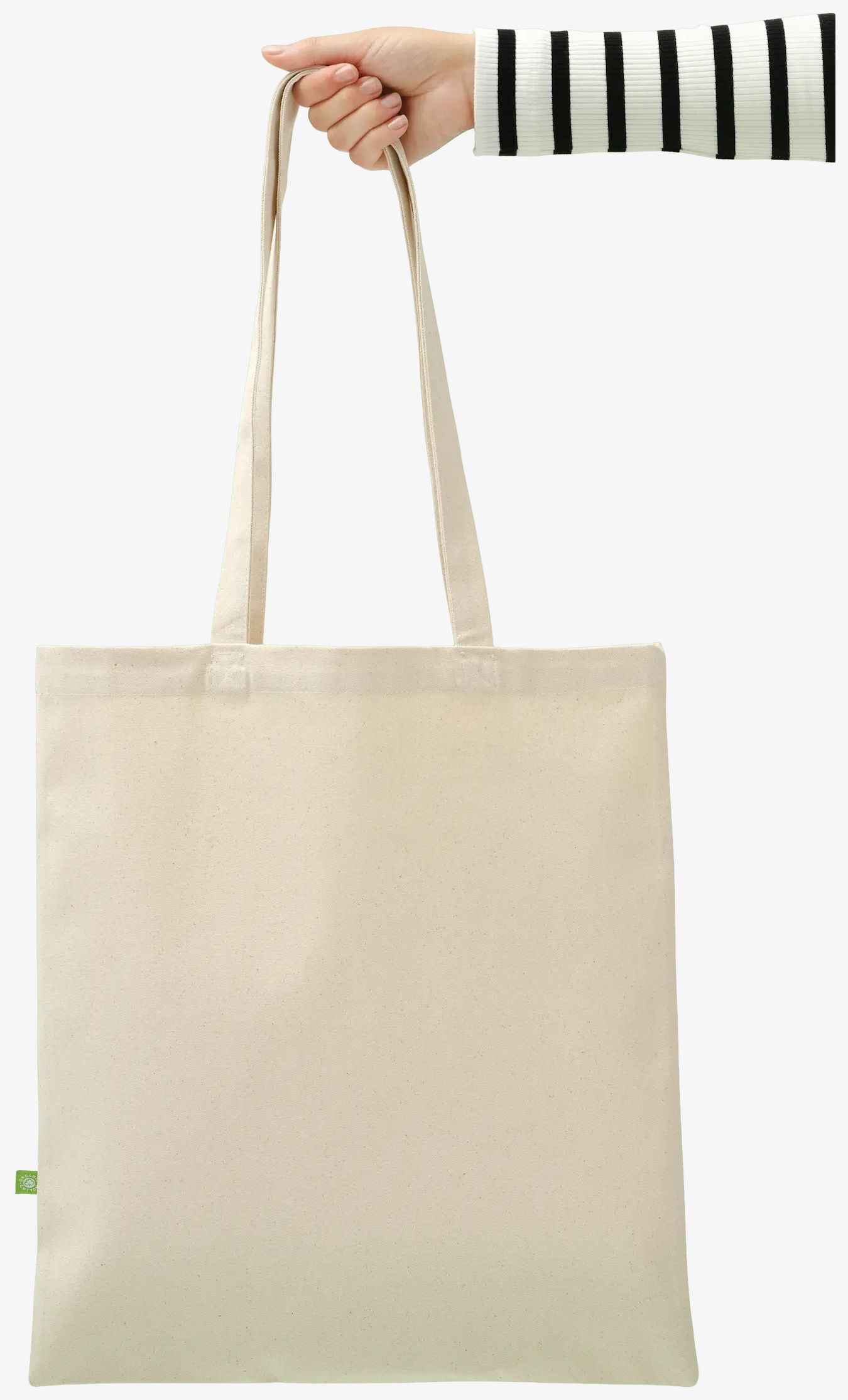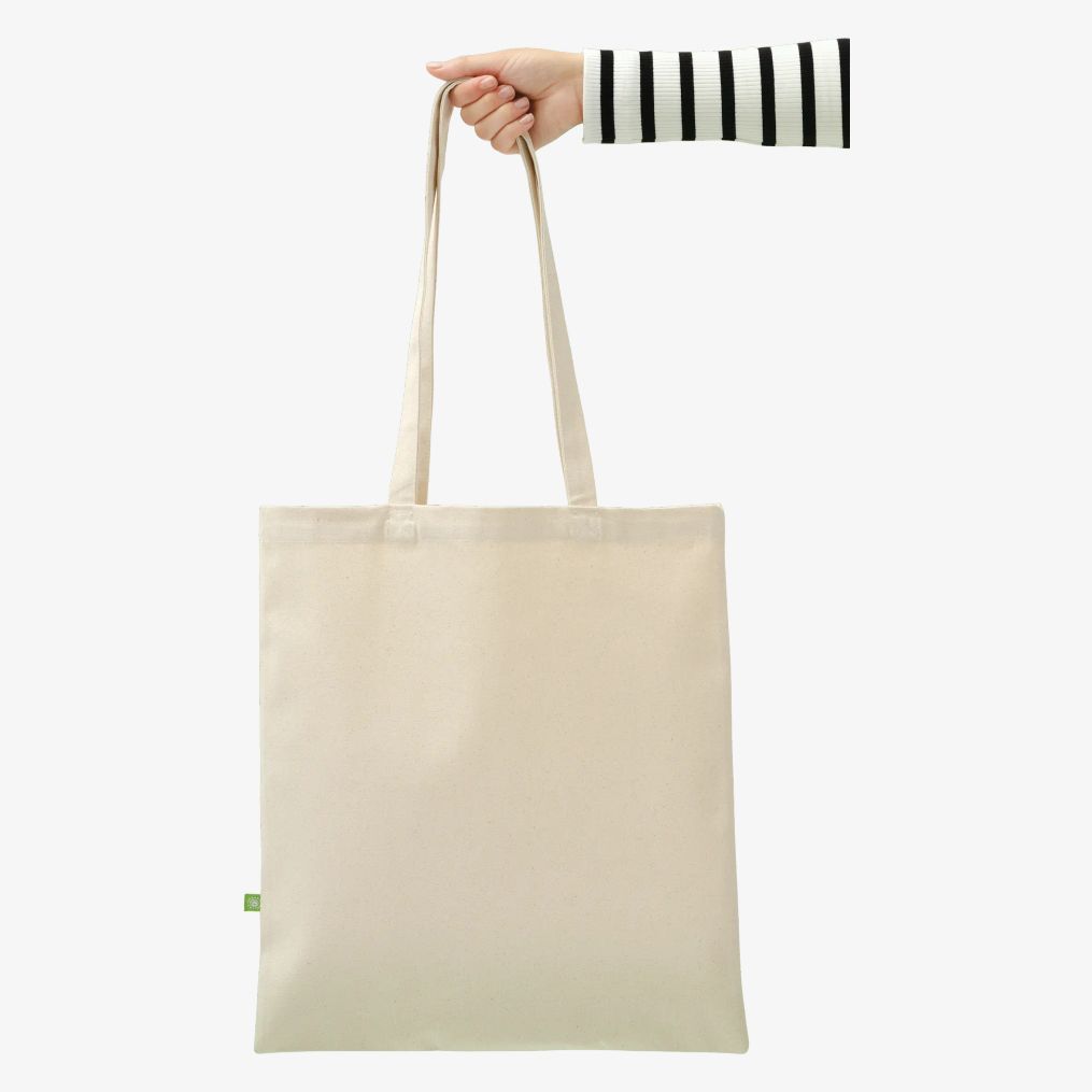 A sacola de lona em algodão orgânico 100 % possui superfície lisa adequada para transportar diversos artigos como produtos de beleza ou conjuntos de presente. Pode ser usada ao ombro ou na mão.