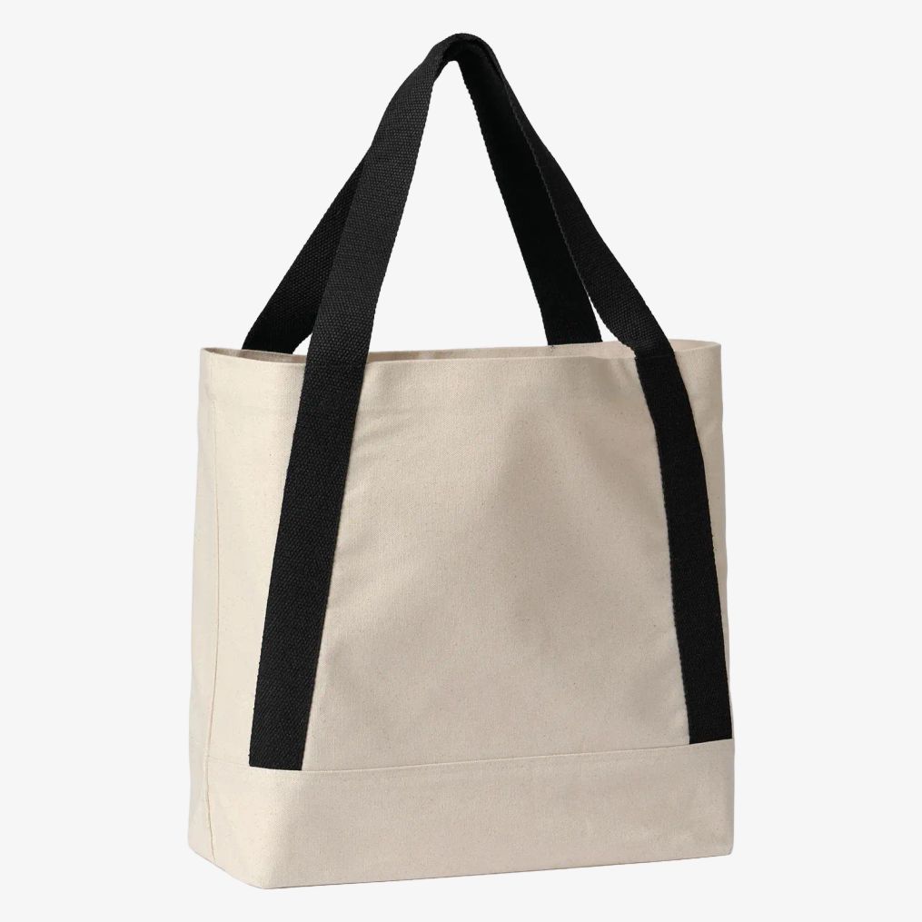A tote bag Dakota é feita em algodão reciclado com alças contrastantes que partem do fundo. Possui uma estrutura leve e resistente adaptada para transportar objetos em várias atividades.