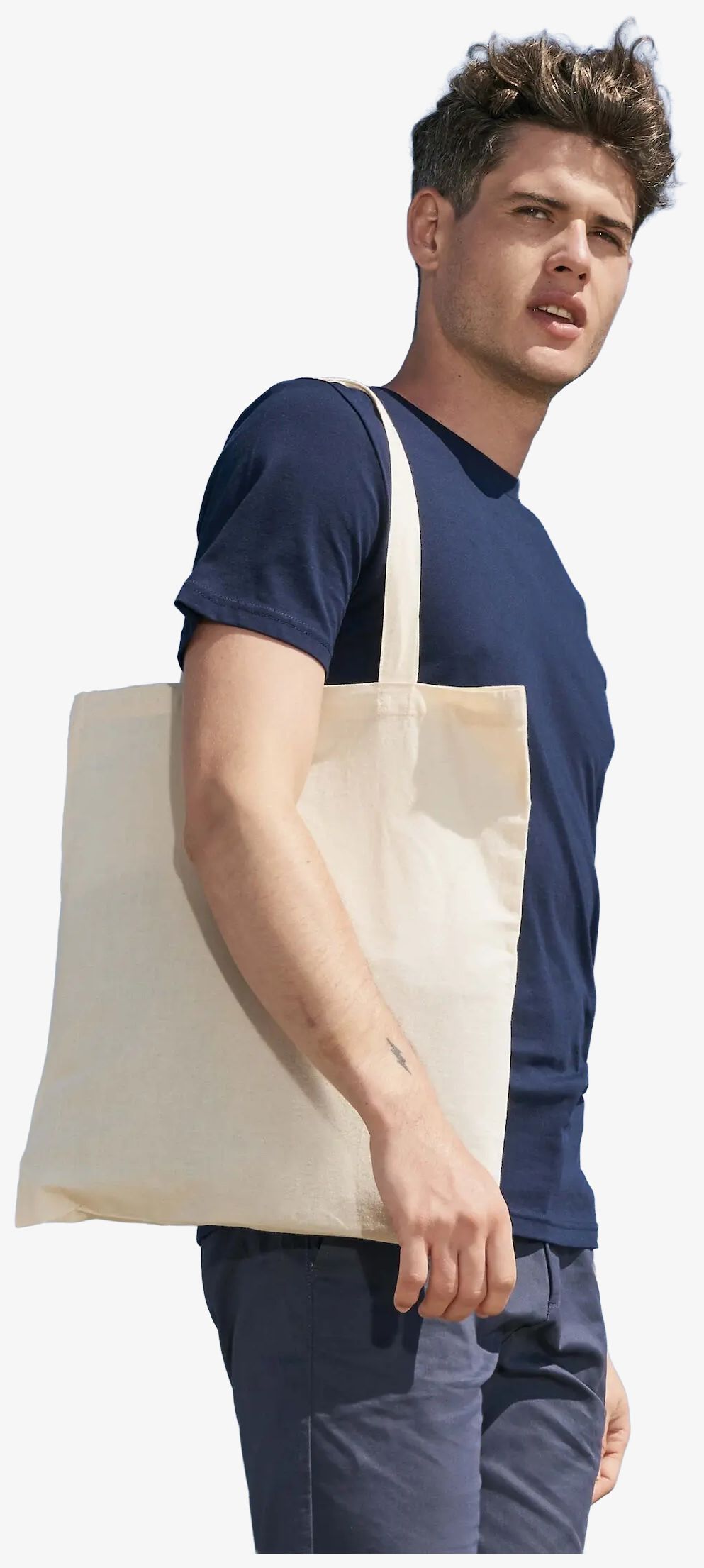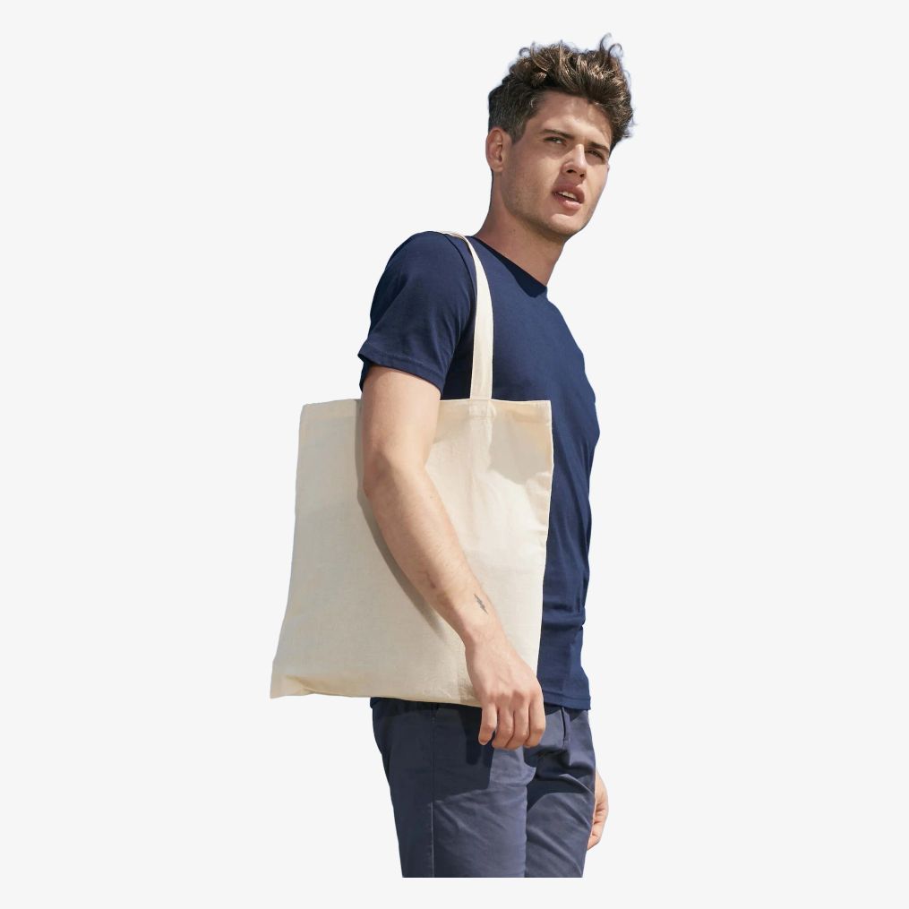 A sacola de compras de algodão Organic Zen é confeccionada em algodão de agricultura biológica certificado OCS. Possui duas alças para transporte na mão ou no ombro.