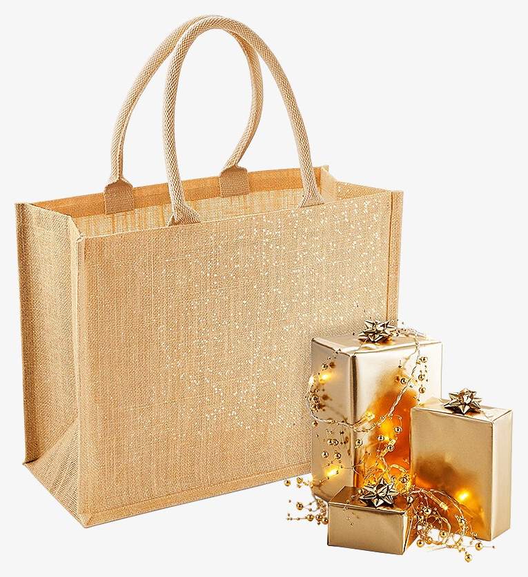 O Shimmer Jute Shopper é um sac shopping elaborado com uma composição de 98% juta laminada e 2% fibras metálicas. Apresenta um detalhe brilhante e alças de algodão com 55 cm de comprimento.