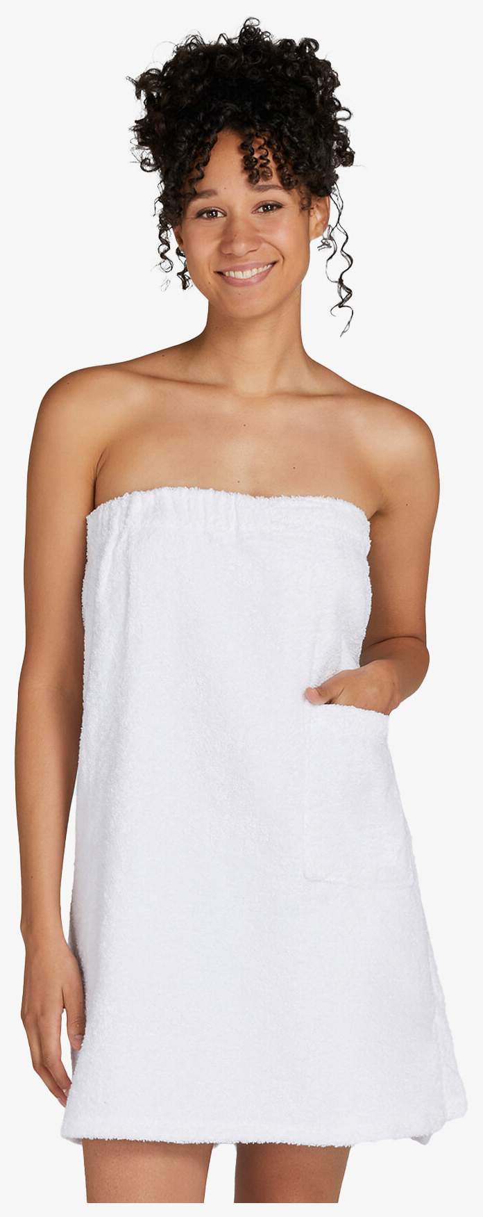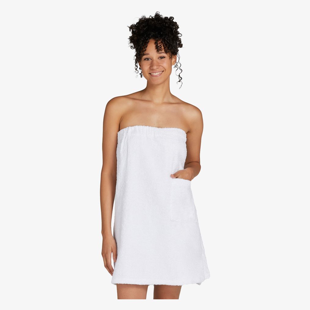 A toalha de algodão sauna Rhone é adequada para spas, centros de fitness, hotéis e sauna doméstica. Possui um bolso embutido, um cinto elástico, fechamento por tira autoadesiva e um gancho para pendurar.