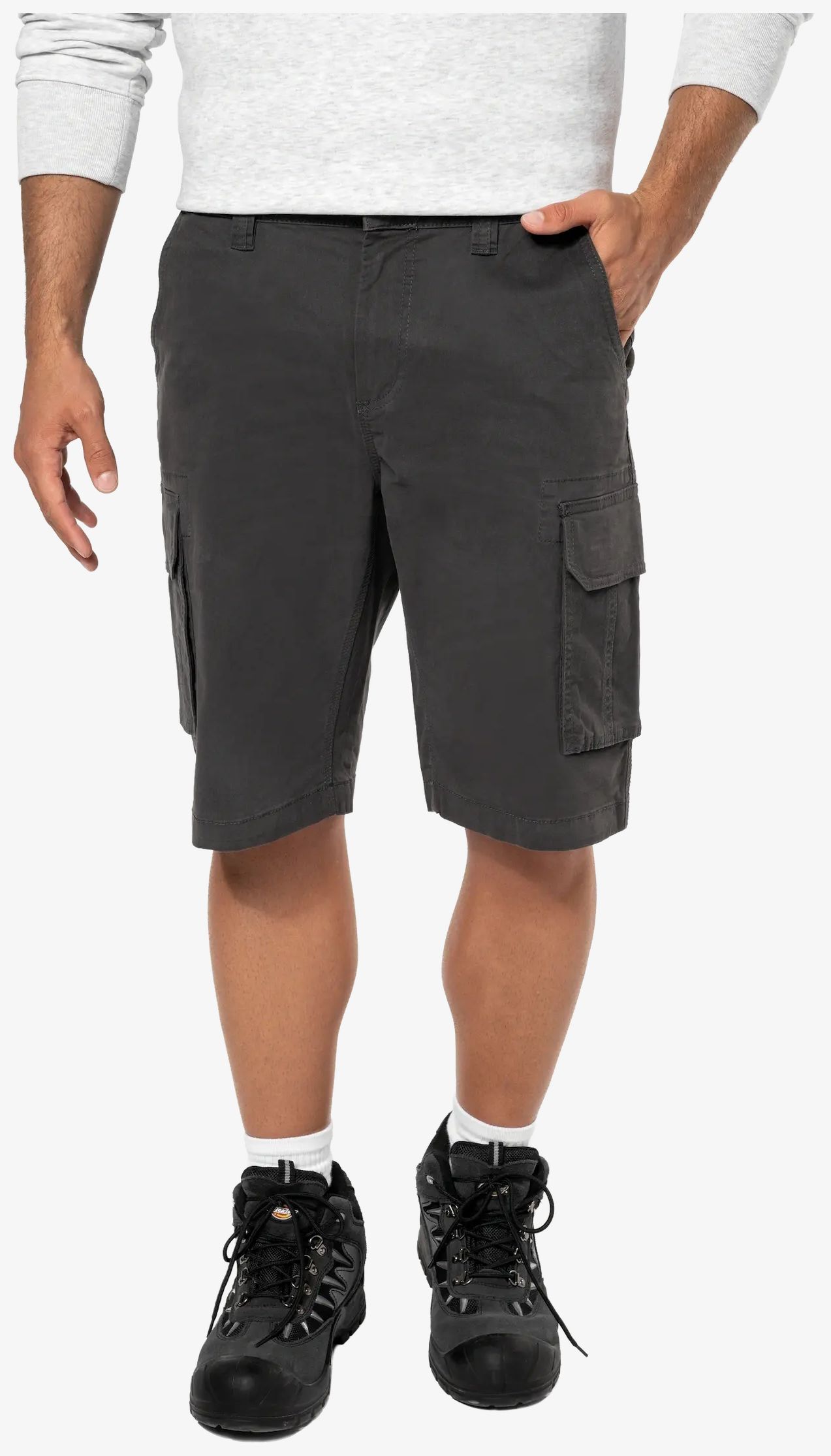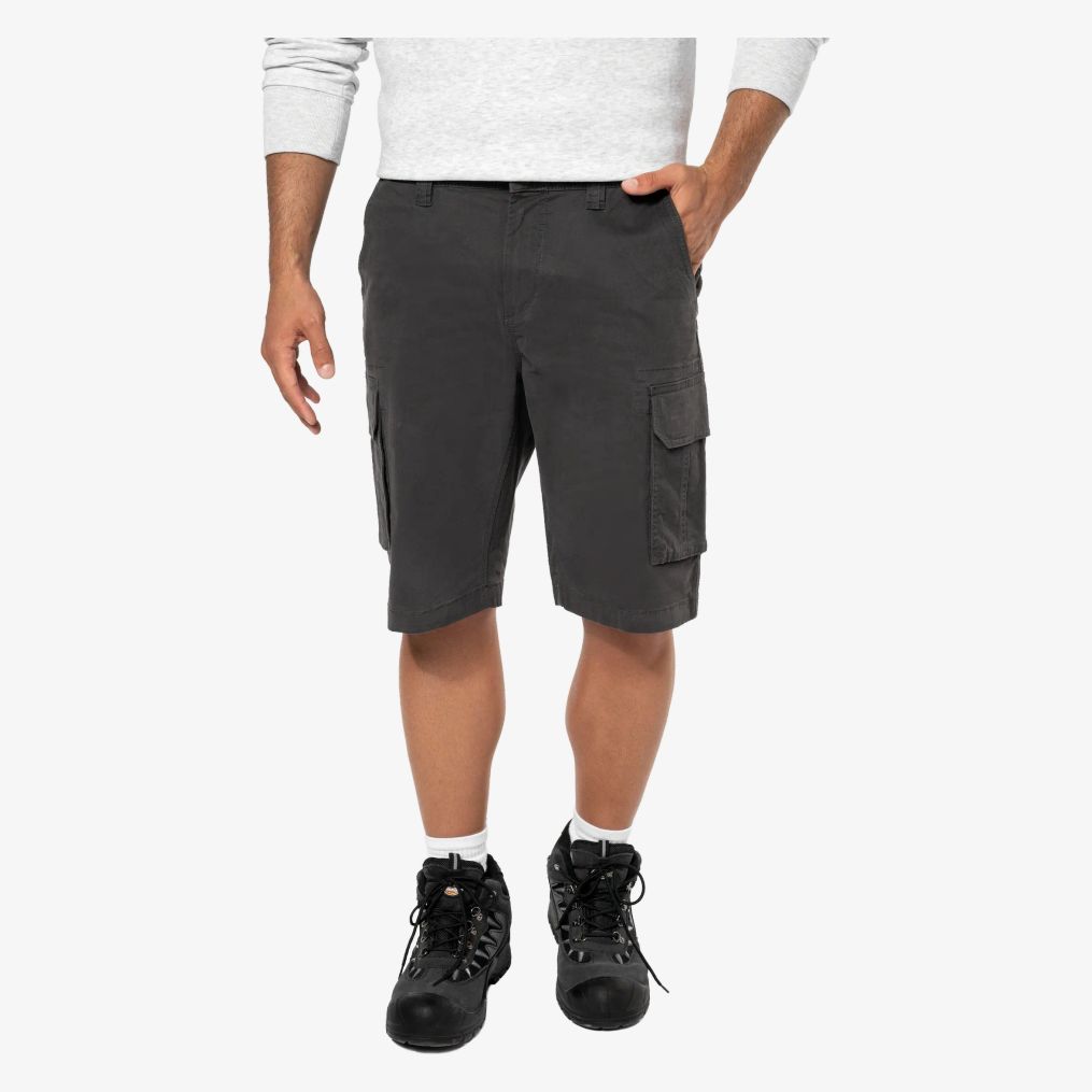 O bermuda multipoches homme é confeccionado em tecido sarjado com acabamento toque de pêssego. Inclui fecho éclair com botão de metal oculto e vários bolsos para arrumação.