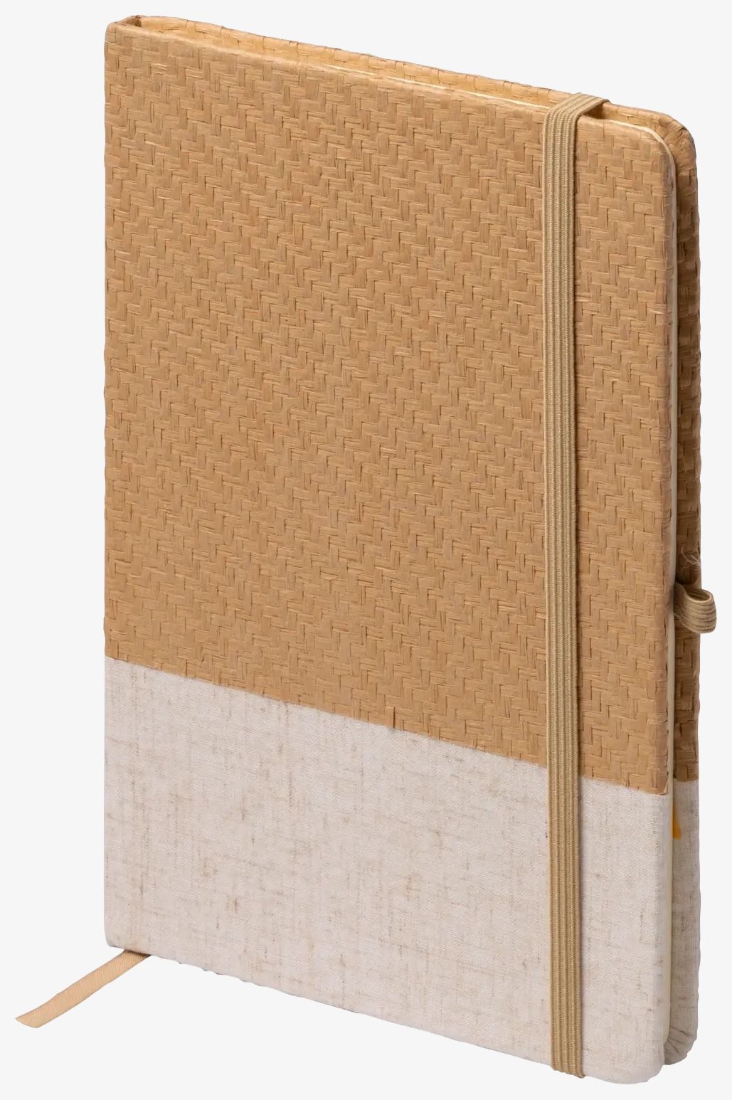 O bloco de notas BERT é feito com capa rígida em palha natural algodão e contém 80 folhas pautadas. Está equipado com marcador de página de fita elástica combinando para facilitar o uso.