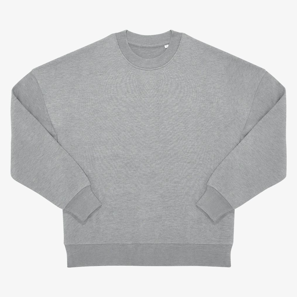 O sweat com interior polar escovado tem costuras laterais e corte amplo com ombros caídos. O tecido combina 80% algodão ring-spun pré-encolhido e 20% poliéster reciclado. O lado algodão garante uma imprimibilidade adequada e sensação macia.