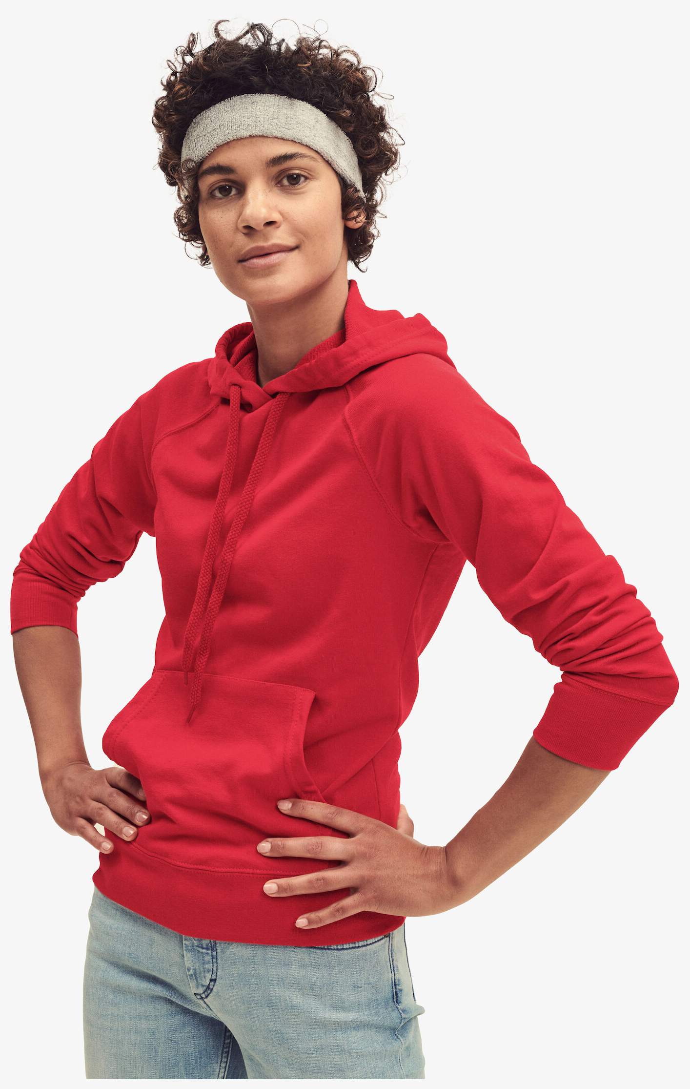 O casaco com capuz Lightweight Hooded Sweat Lady-Fit é feito em tecido leve com capuz equipado com cordão plano da mesma cor. Inclui bolso canguru e mangas raglan. As costuras laterais contribuem para um corte adaptado à silhueta feminina.