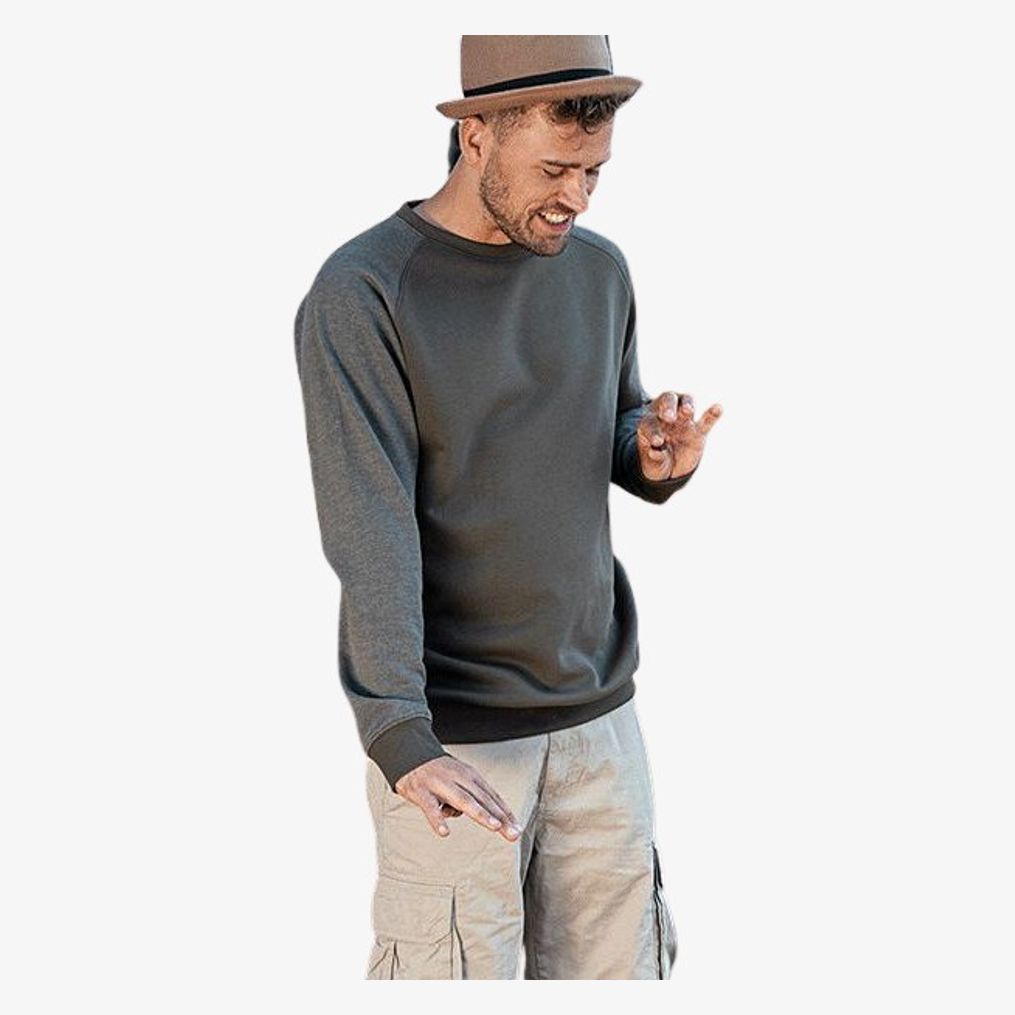 O sweat de algodão maioritário my mate my510 caracteriza-se por um corte moderno e decote redondo. Os acabamentos nas mangas e no decote são em malha canelada 2x1. Inclui uma faixa de reforço, mangas raglan, costuras laterais e uma etiqueta de tamanho neutro deslocada lateralmente, assim como uma etiqueta destacável.