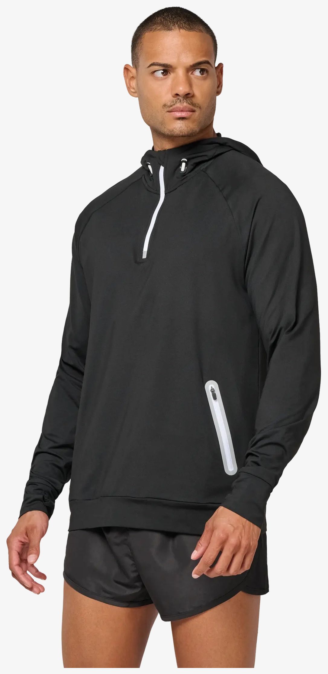 O sweat-shirt com capuz pa360 é feito em jersey escovado composto por 90% poliéster e 10% elastano. Possui mangas raglan para maior liberdade de movimento, assim como dois bolsos com zíper refletivos. Os cordões dos zíperes variam conforme a cor.
