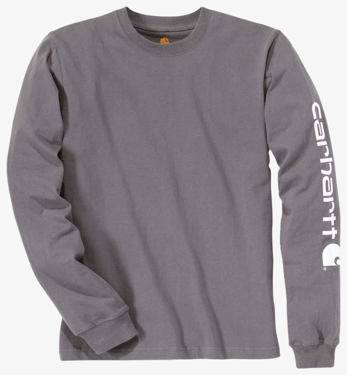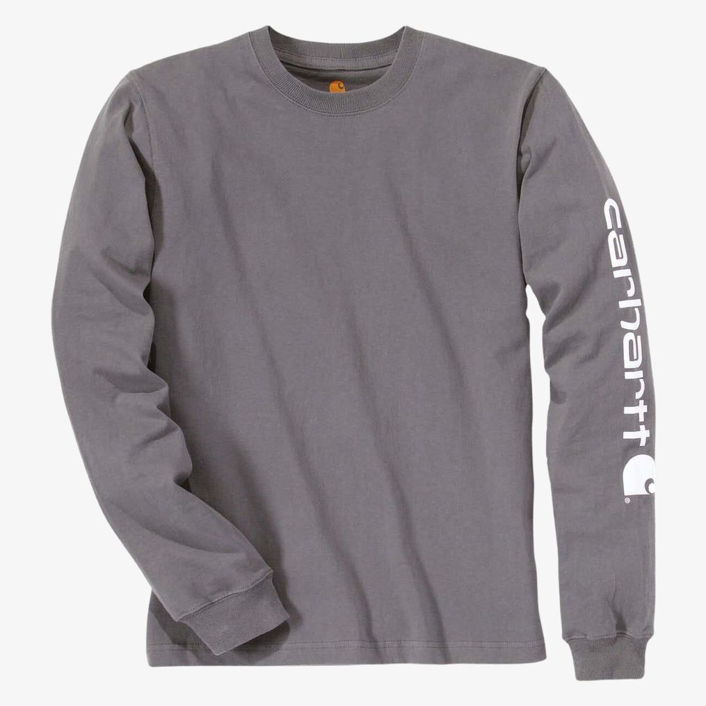 O tee-shirt de manga longa é confeccionado em algodão jersey, exceto na versão Heather Grey que contém 90% algodão e 10% poliéster. Apresenta gola canelada e costuras laterais. Este modelo possui uma impressão na manga esquerda nas costas e corte largo.