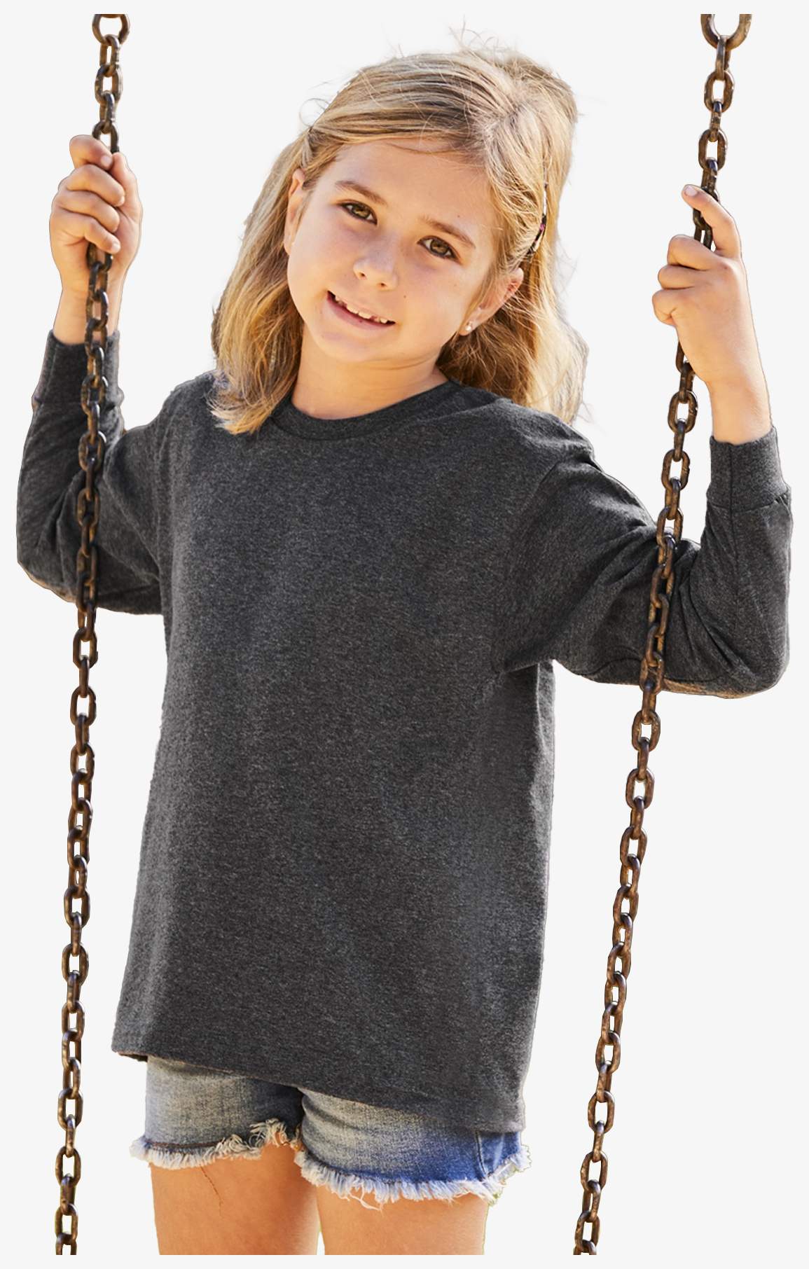 O Long Sleeve Valueweight T Kids é um tee-shirt infantil de manga comprida em 100% algodão, com gola em algodão/elastano e fita de limpeza. Mangas direitas e punhos em canelado de algodão/elastano para uma fixação regular.