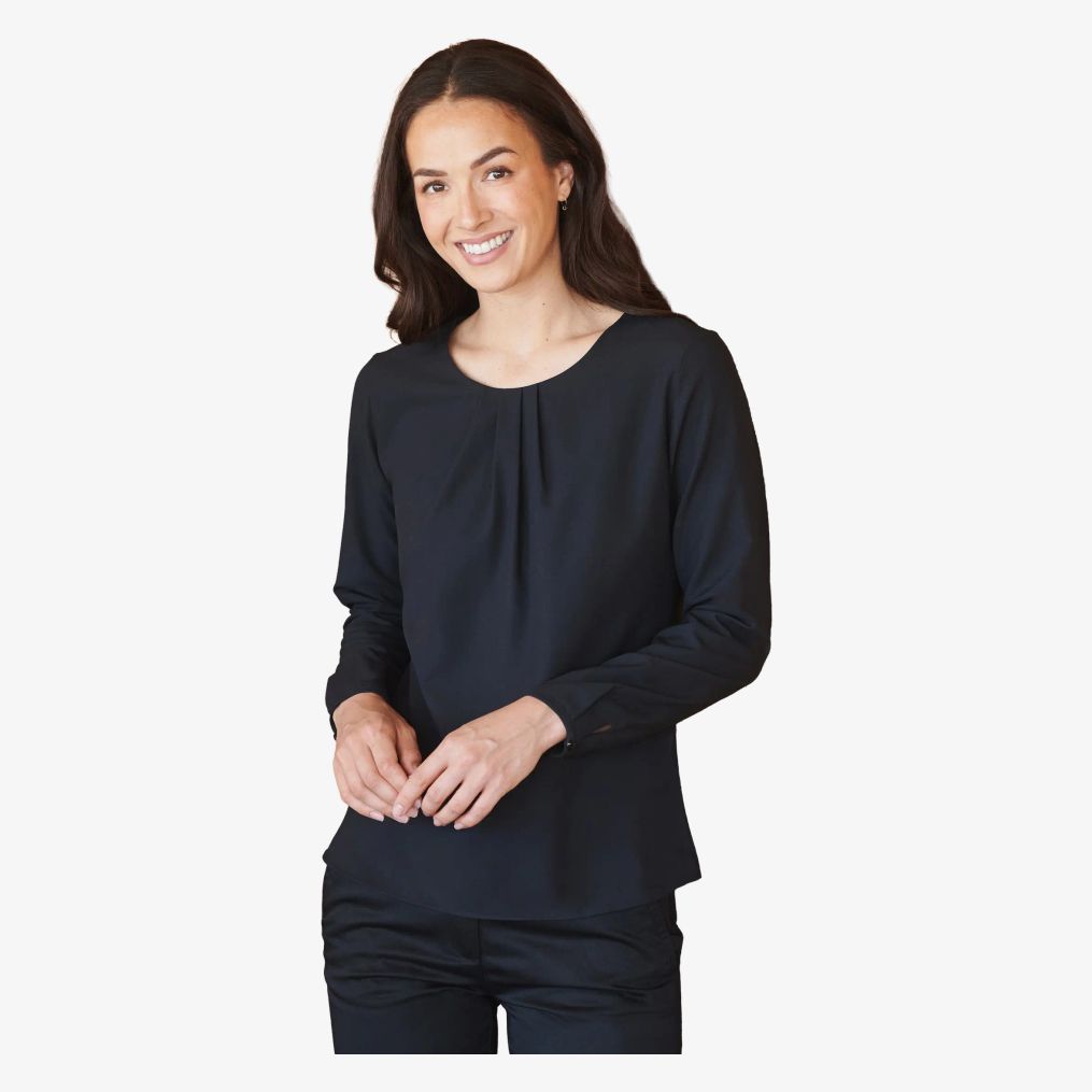 Ladies' pleat front l/s blouse