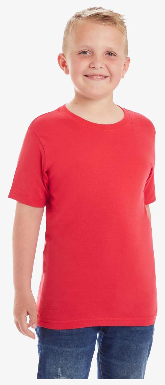 O tee-shirt infantil em algodão orgânico penteado ring-spun tem corte unissex adequado para meninos e meninas. Possui decote redondo em malha fina canelada com borda do decote contrastante. A malha é jersey fina. A etiqueta no pescoço é neutra e destacável.