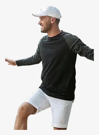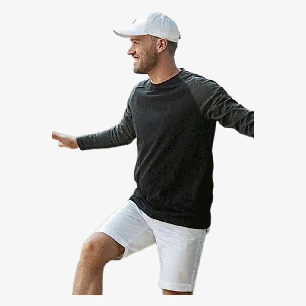 O my mate é um tee-shirt de algodão ring-spun com corte moderno e decote redondo. Possui gola estreita, faixa de acabamento e etiqueta lateral de tamanho neutro. As mangas raglã e as costuras duplas reforçam a estrutura.