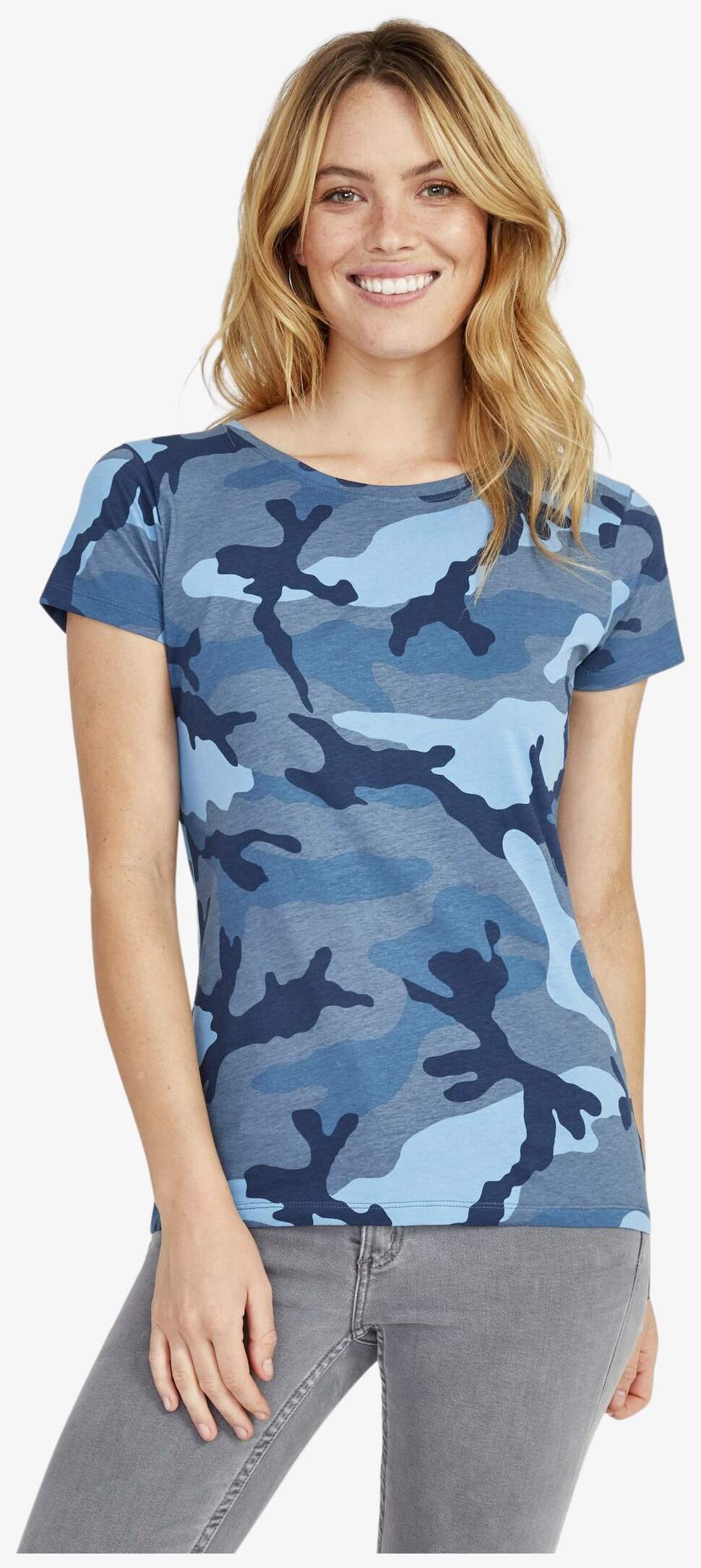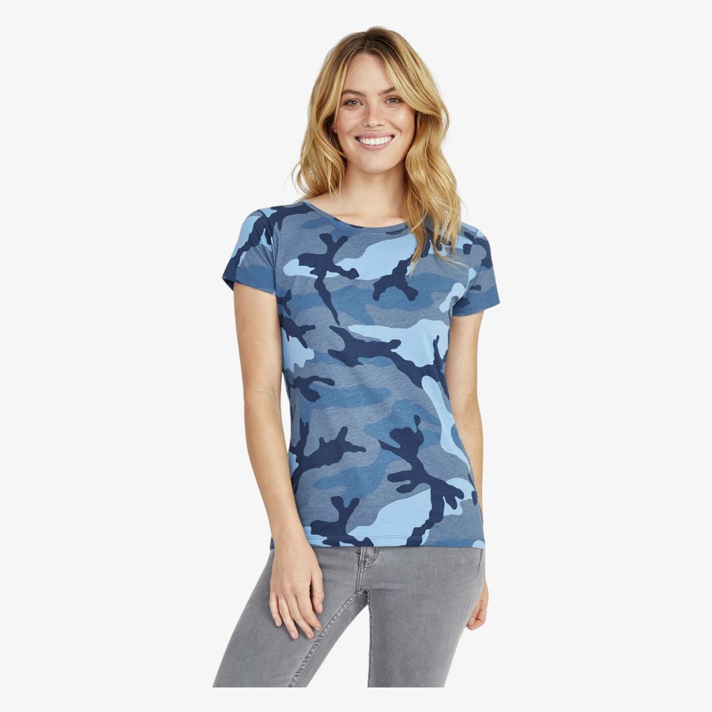 A tee-shirt Camo Women é feita de algodão semi-penteado ringspun com mangas curtas e corte costurado. O tecido proporciona uma estrutura adequada para uso diário.