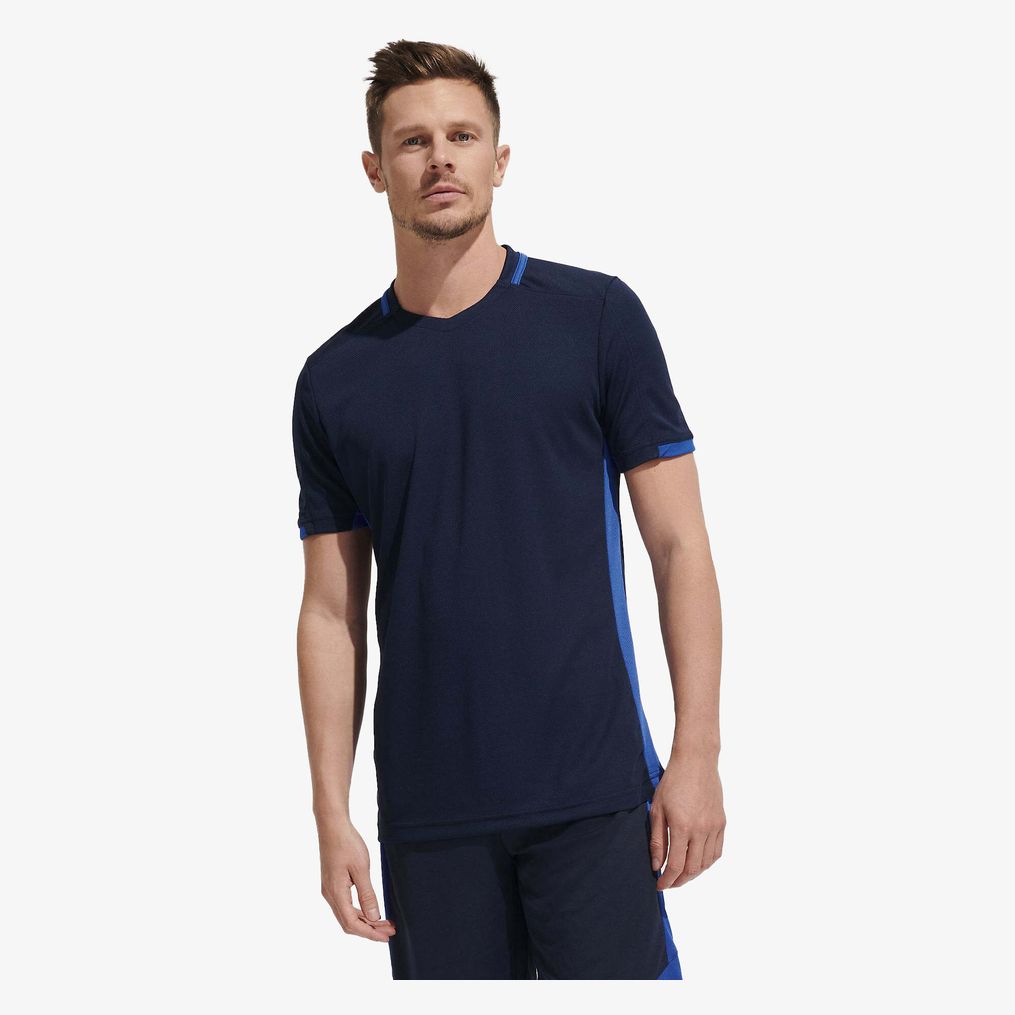 O tee-shirt Classico é uma camisa adulta com decote em V, viva contrastante e inserções de mesh nas laterais. É fabricado em poliéster respirável.