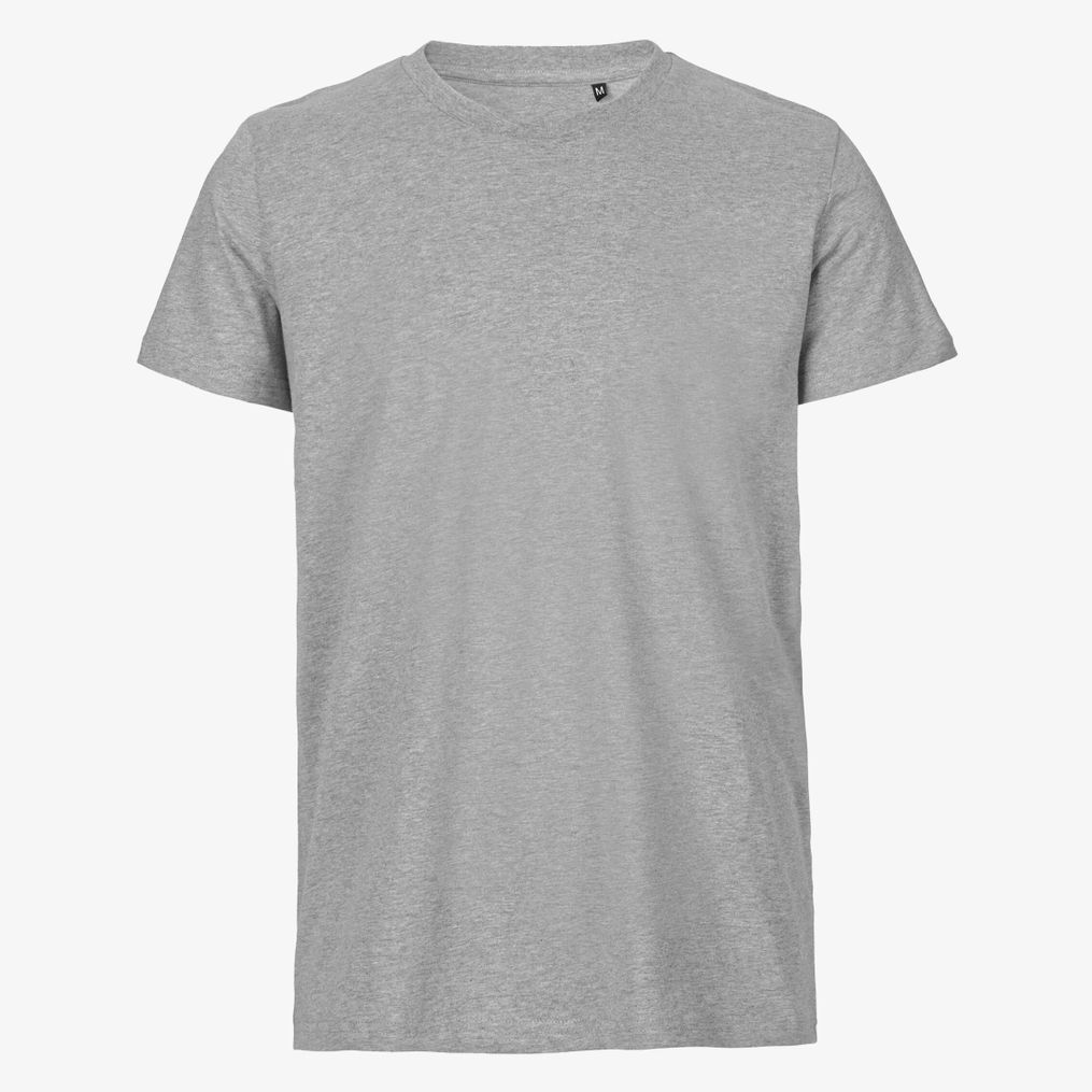 O tee-shirt de algodão é feito em jersey simples com mangas curtas ajustadas. O corte é ligeiramente ajustado nos ombros e mais largo no corpo. A gola redonda possui uma costela de elastano de dupla espessura e uma faixa de acabamento interna. O tecido é algodão penteado ring-spun proveniente de conversão orgânica.