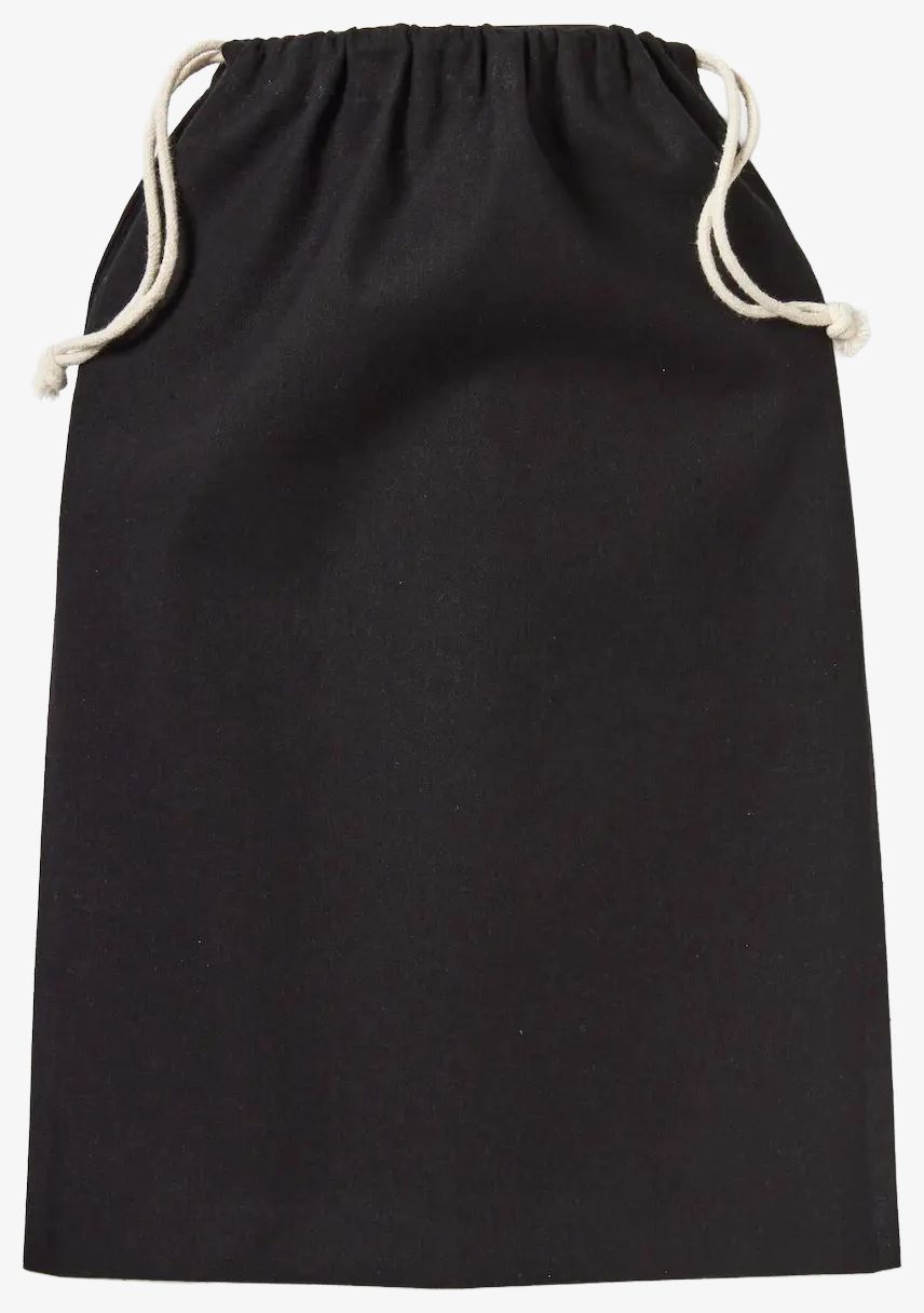 A bolsa de cordão em algodão 100% reciclado é projetada para o armazenamento de objetos variados com seis tamanhos disponíveis que vão de 10 x 15 cm a 49 x 75 cm. Está equipada com fecho de cordão duplo e cordões naturais para aperto.