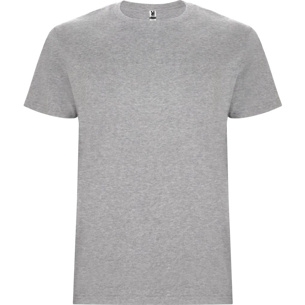 Tee-shirt unisexe à col rond. Bande de propreté au col. Col avec bord côte élasthanne. Manches courtes. Tubulaire. Composition : 100% coton semi-peigné Ringspun, sauf couleurs: Blanc chiné (98 % coton, 2 % viscose), Gris chiné (85 % coton, 15 % viscose).