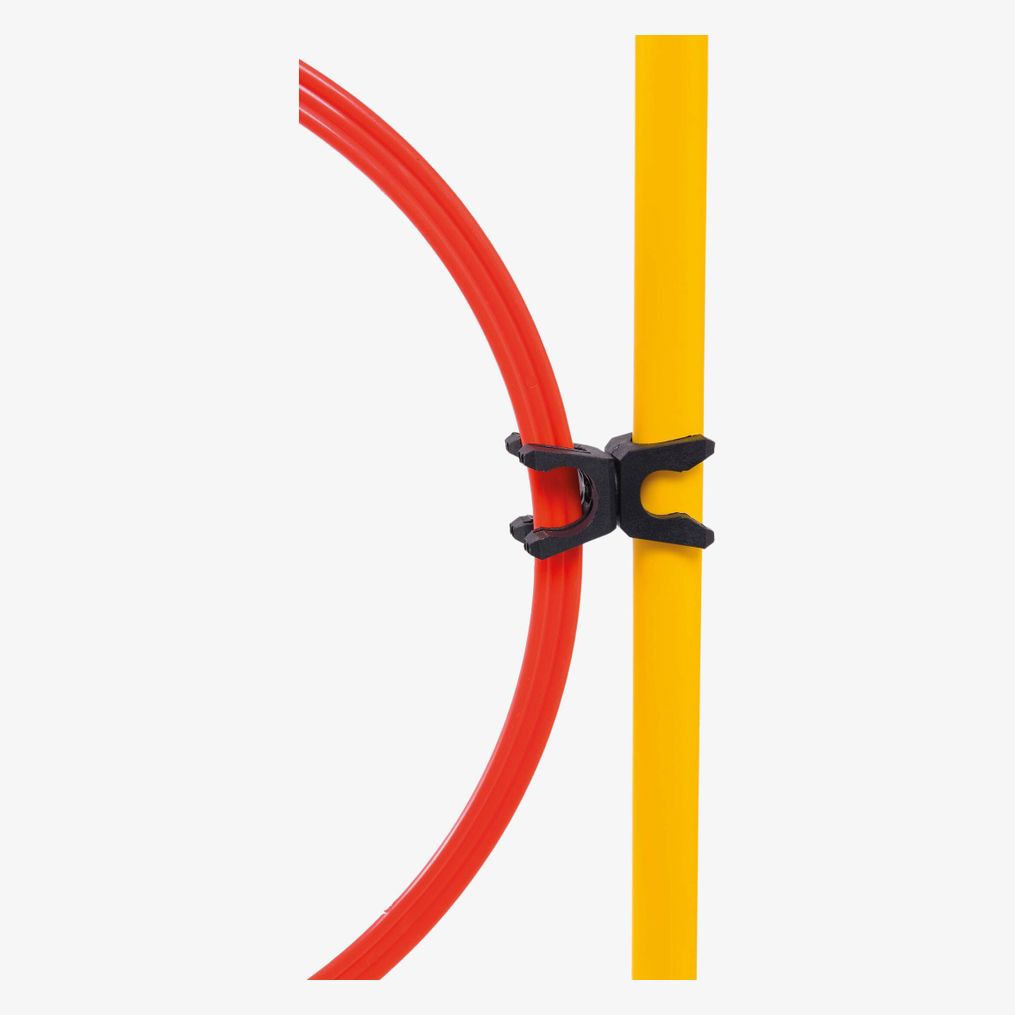 Clips [[PROACT]] i plastmaterial passar för ett träningskit med platt ring. Fäste av markörer eller ringar för att organisera och stabilisera övningar.