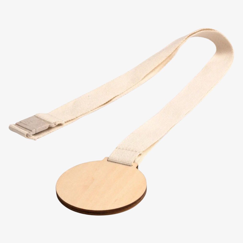 Medaljen HOLDEN är tillverkad av bambu med en bomullsaxelrem. Den kombinerar två naturliga material för daglig användning.