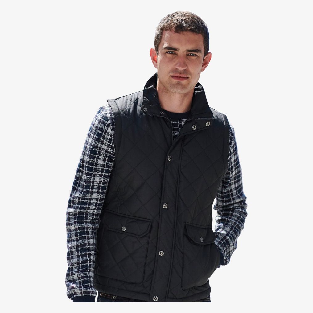 The Tyler bodywarmer micro poplin is quilted and water-repellent with Thermo-Guard thermal protection. Its lining is polyester taffeta. It includes two lower patch pockets with side entry to warm hands and back vents with press stud closure. An internal zip access is placed in the side seam.
