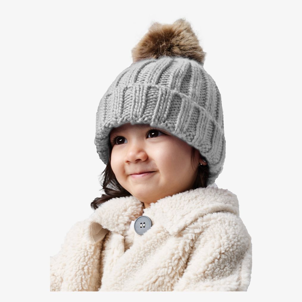 Hem barn Bonnet en grosse maille et pompon en fausse fourrure pour bébé